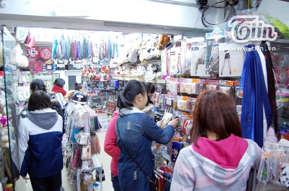 | Các cửa hàng lưu niệm ở phố Tôn Thất Tùng (Hà Nội) những ngày này rất đông khách, chủ yếu là các bạn học sinh, sinh viên. |