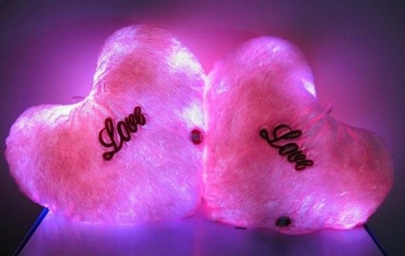 | Những món quà độc đáo như hai chiếc gối ôm phát sáng này, đang trở thành tâm điểm quà tặng trong ngày lễ tình nhân năm nay. |