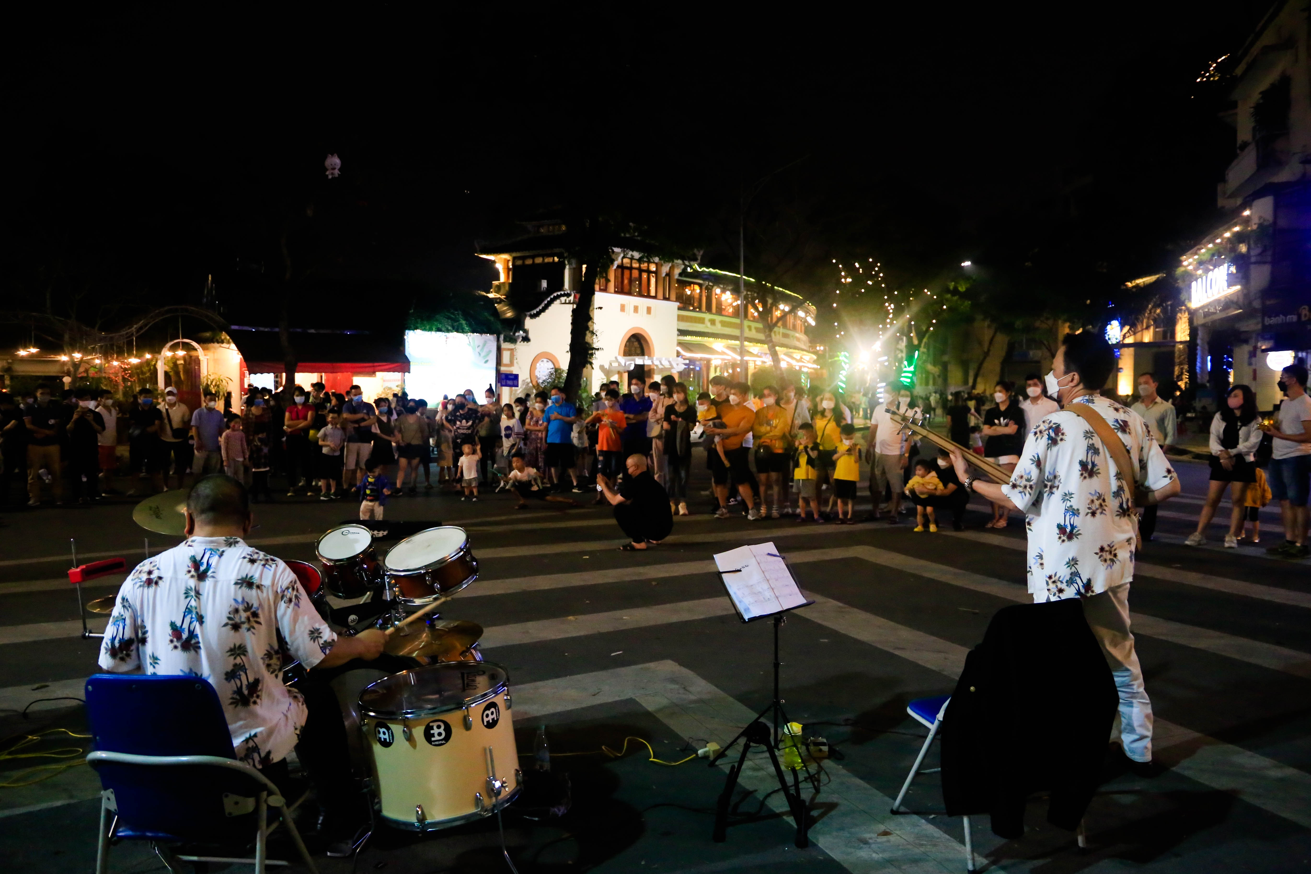 Tối 18/3, phố đi bộ hồ Gươm (Hoàn Kiếm, Hà Nội) mở cửa trở lại sau gần 1 năm tạm đóng cửa vì dịch bệnh. Các hoạt động vui chơi như khiêu vũ, biểu diễn âm nhạc đường phố, nhảy cover nhạc Kpop được tổ chức xung quanh hồ.
