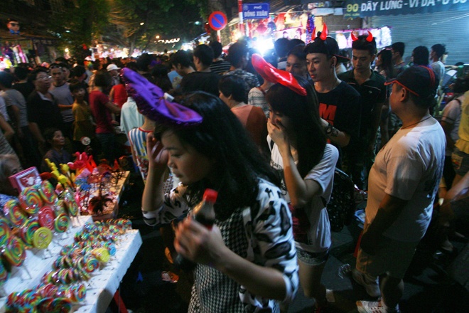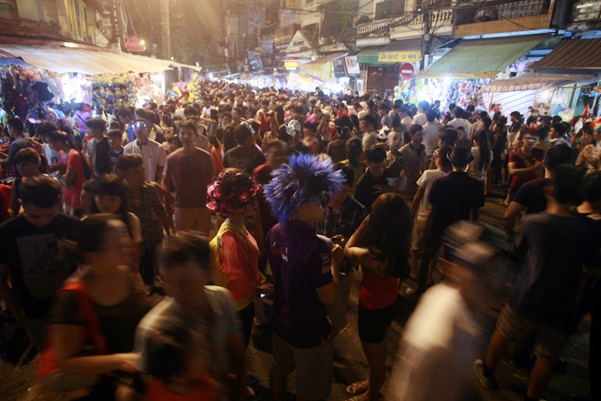 | Tối 18/9, các con phố Hàng Mã, Lương Văn Can nhộn nhịp. Thành phần khuấy động đường phố chủ yếu là giới trẻ. |