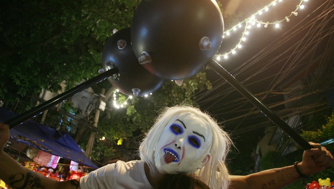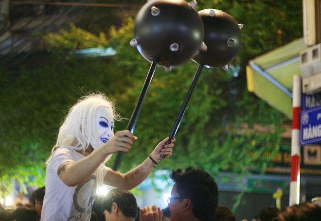 | Hò hét 'loạn xới' với chiếc mặt nạ gây kinh hãi. |