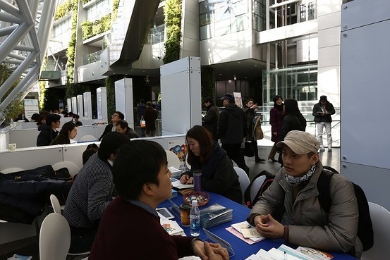 | Người tìm việc đang nói chuyện với nhà tuyển dụng tại một hội chợ việc làm ở thủ đô Seoul, Hàn Quốc, hồi tháng 2/2014. Ảnh: Bloomberg |