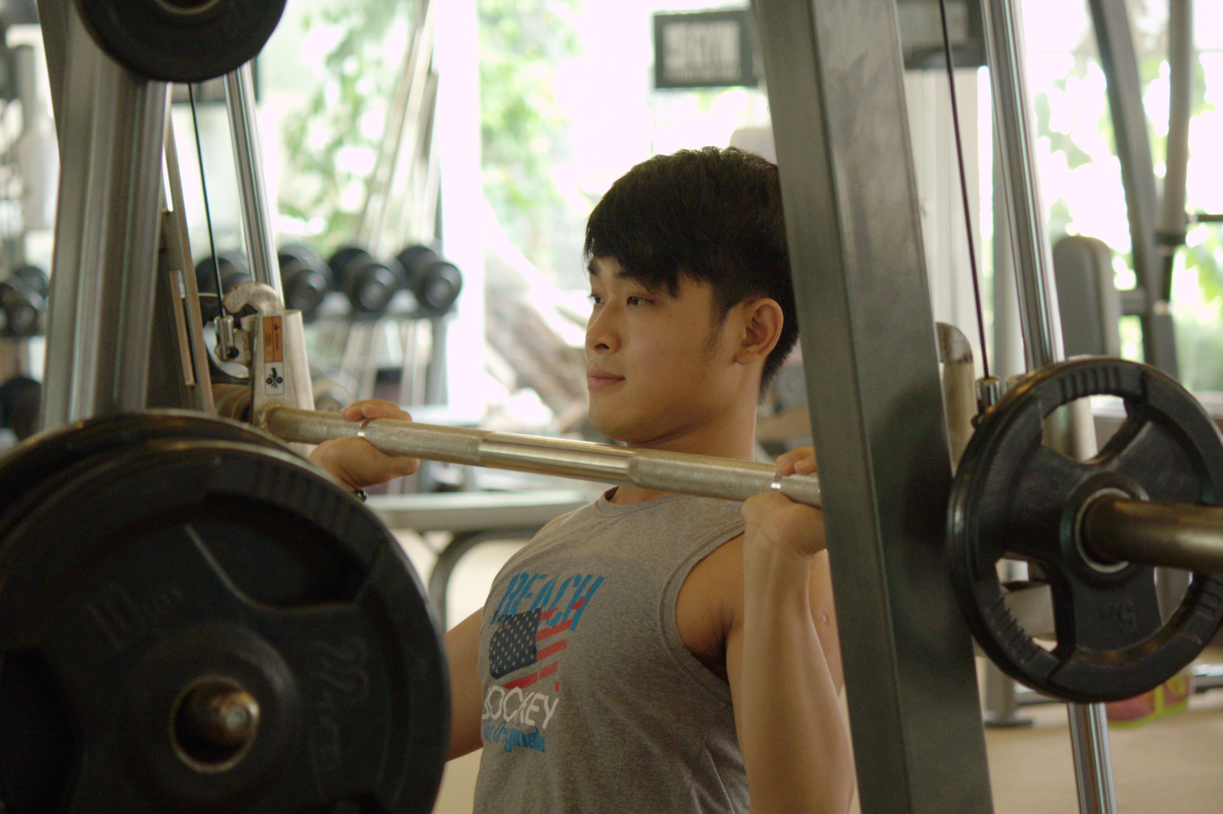 Nhiều chàng trai cũng cũng chọn trang phục Jockey và thể hiện các động tác đầy khỏe khoắn, mạnh mẽ khi tập gym.
