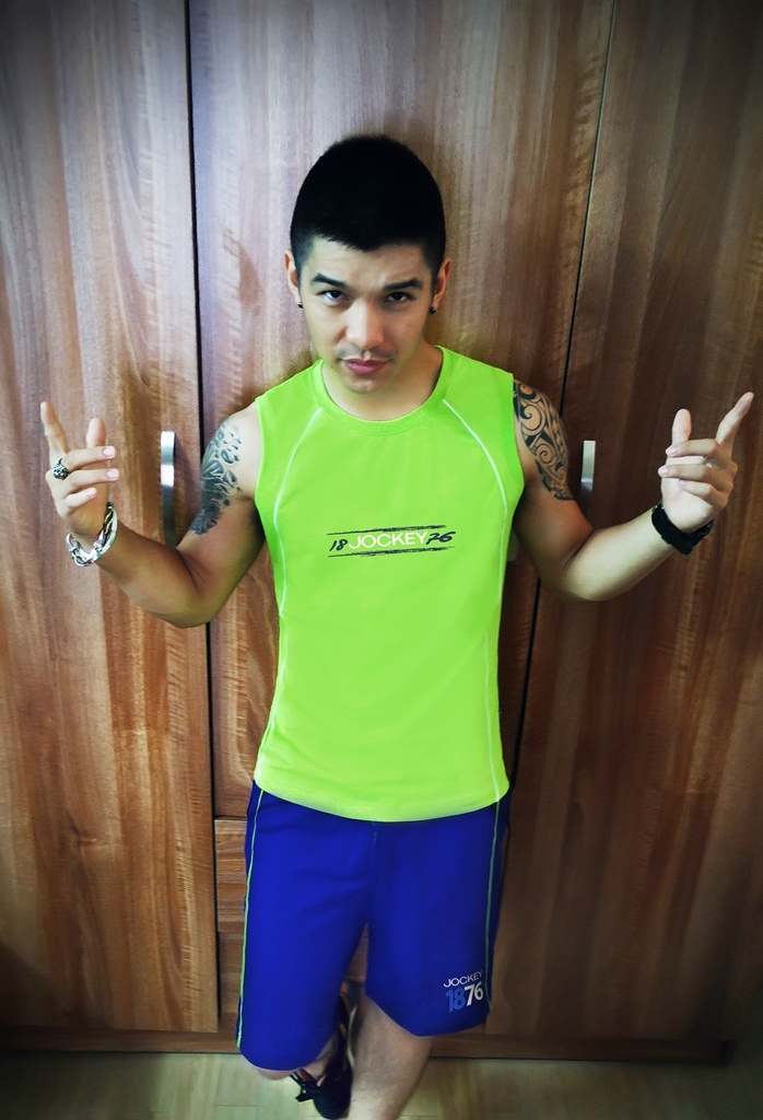 Một trong những thí sinh khá đặc biệt của cuộc thi chính là nam ca sĩ Cường Seven. Nổi tiếng với phong cách cá tính và những bước nhảy điêu luyện, Cường Seven được cộng đồng mạng yêu thích, với hơn một triệu lượt theo dõi trên Facebook cá nhân. Chọn cho mình trang phục cho Jockey để thoải mái trong quá trình luyện tập vũ đạo, chàng ca sĩ Hà Nội tranh thủ "pose" một tấm ảnh để gửi tham gia cuộc thi.