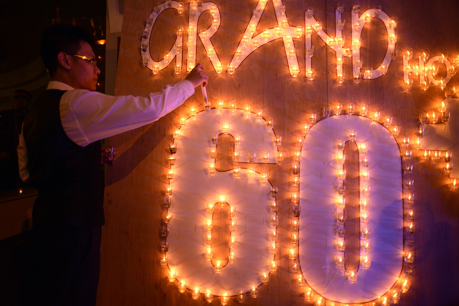 Một nhân viên khách sạn Grand Saigon thắp nến thành con số 60 - số phút tắt điện hưởng ứng Giờ Trái đất.