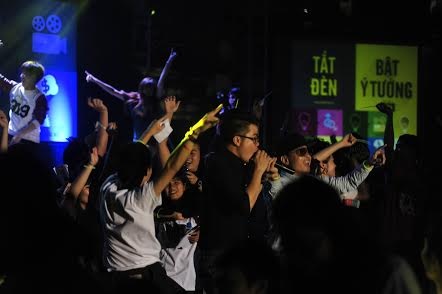 Tại Nhà văn hóa Thanh niên TP.HCM cũng tương tự. Các ban nhạc mặc đồ có phản quang trình diễn trong ánh sáng của các ngọn đèn led - một thiết bị tiết kiệm điện.