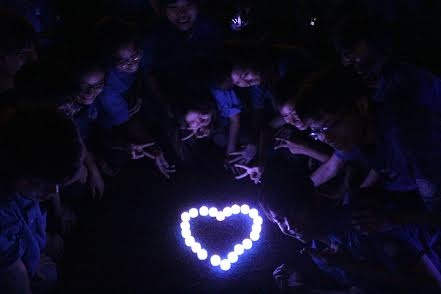 Năm nay, giới trẻ không thắp nến mà dùng đèn led để kết hình trái tim. Đây là hình ảnh thường thấy của Giờ Trái đất. Tạo nên sự lãng mạn cho giới trẻ.