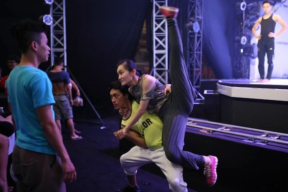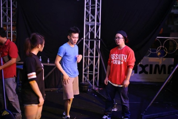| Mỹ An và Đình Lộc đang tích cực tập luyện hip hop cùng biên đạo Việt Max. |