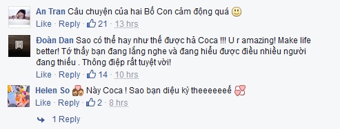 Linh Hương, nhân viên công sở chia sẻ: “Khi xem đoạn clip xong, mình có thêm động lực để nói lời xin lỗi một người bạn cùng chỗ làm vì những lời lúc nóng giận của mình. Đoạn clip đã giúp mình biết trân trọng các mối quan hệ xung quanh nhiều hơn”. Còn với Thùy Dương, một du học sinh Nhật thì clip lại giúp cô bạn nhấc ngay điện thoại lên để gọi về cho bố mẹ. “Mình thương bố mẹ lắm nhưng lại lười bày tỏ. Từ giờ mình sẽ dành ít nhất 10 phút mỗi ngày để gọi điện trò chuyện với cả nhà và nói yêu bố mẹ nhiều hơn”, Dương bộc bạch.