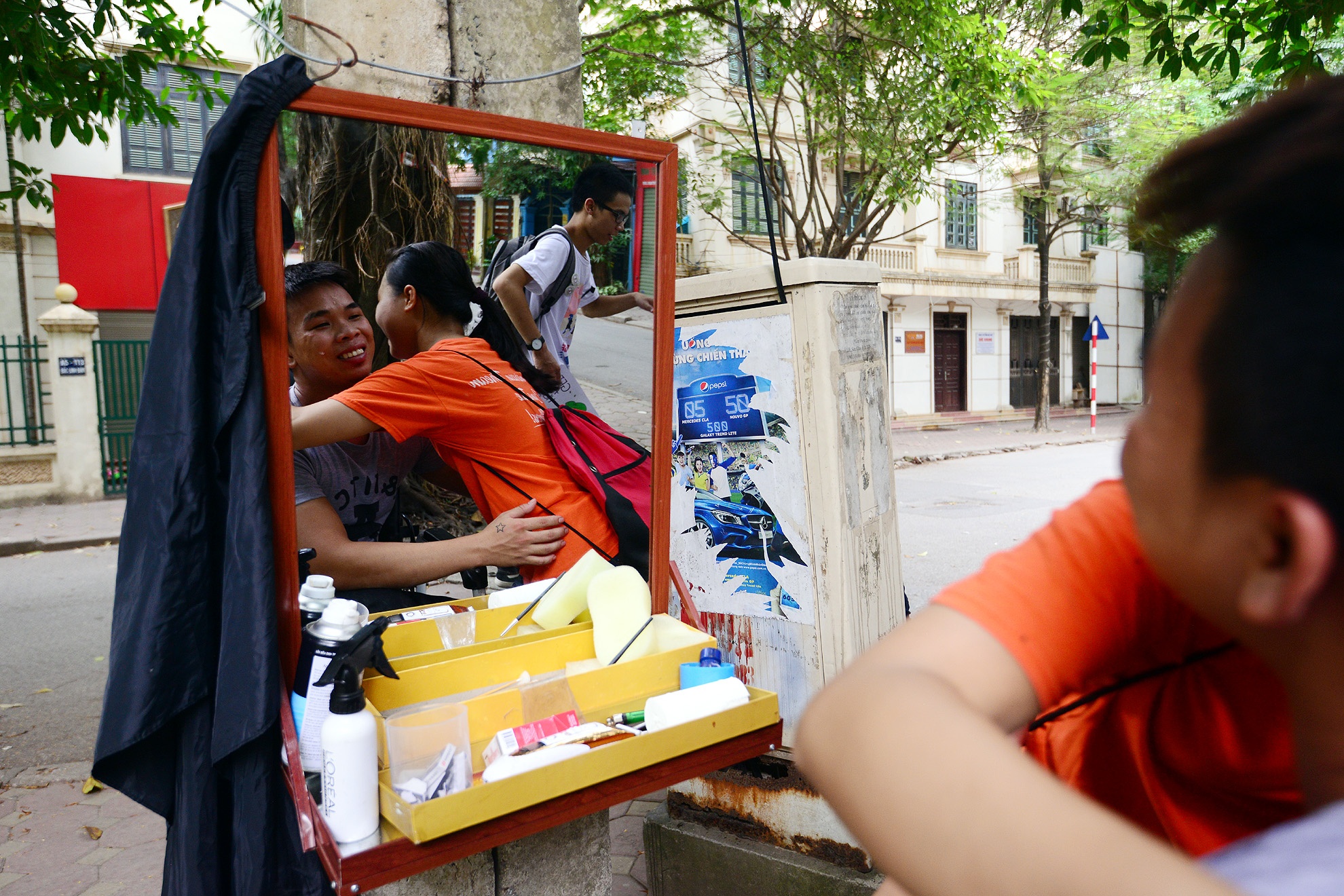 Một người thợ cắt tóc cũng được lần lượt các bạn trẻ chia sẻ cái ôm nồng ấm. Anh cho biết: "cả ngày mới được vài người khách, đang buồn thì nhận được niềm vui".