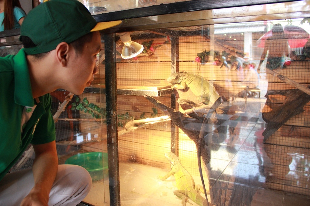 | Thú chơi bò sát độc, lạ được các bạn trẻ phố núi tiếp nhận cách đây một năm. Ban đầu chỉ có vài người, nhưng nhờ sự liên kết qua Facebook, hiện có khoảng chục thành viên tham gia nhóm chơi bò sát. Một số người đang học tập, làm việc tại TP HCM cũng vào hội. Mỗi chiều chủ nhật, nhóm tập hợp tại quán cà phê Pet trên đường Trần Phú, TP Buôn Ma Thuột để giao lưu, trao đổi kinh nghiệm trong việc chăm sóc, bảo vệ thú cưng. |