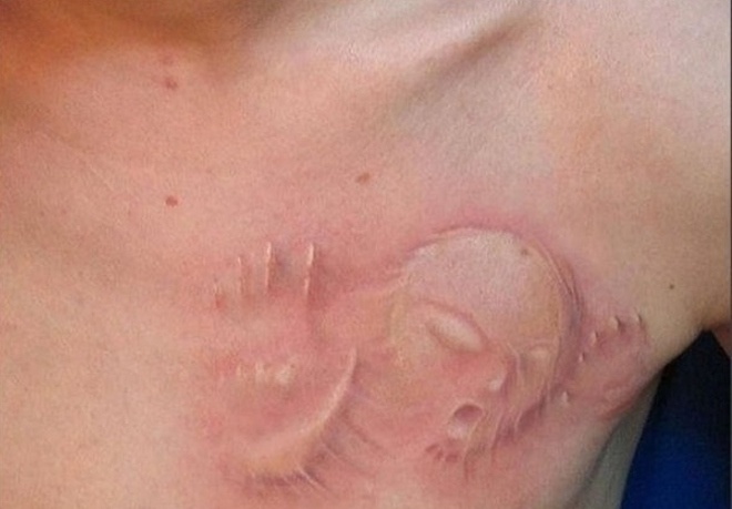 Tạo các hình mô phỏng vết rách, sẹo nhàu nát, đường cào xé... đang là mốt xăm kì dị của giới trẻ thế giới.