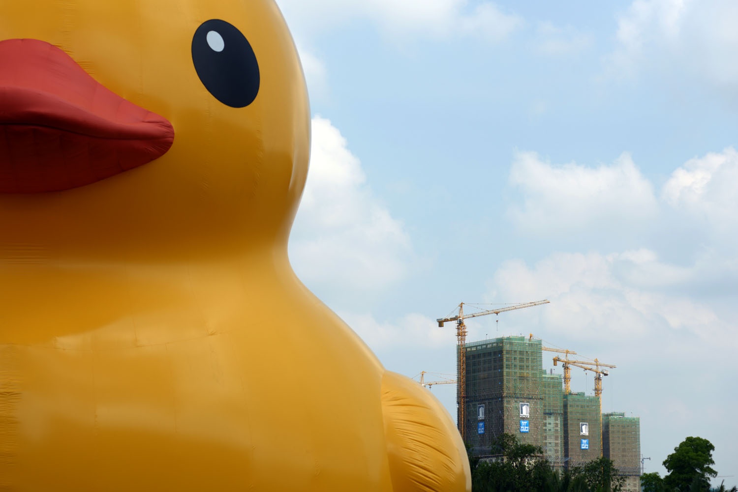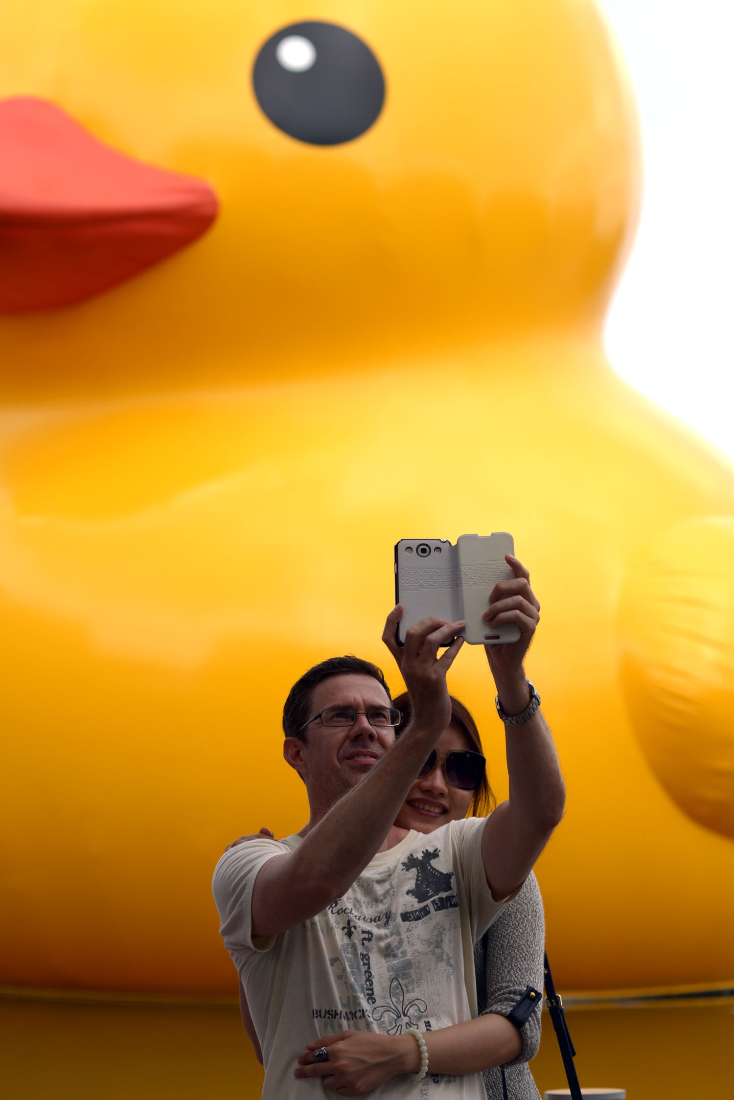 Giant Rubber Duck do nghệ nhân người Hà Lan Florentijn Hofman tạo ra có kích thước bằng toà nhà 6 tầng với chiều cao 19 m.