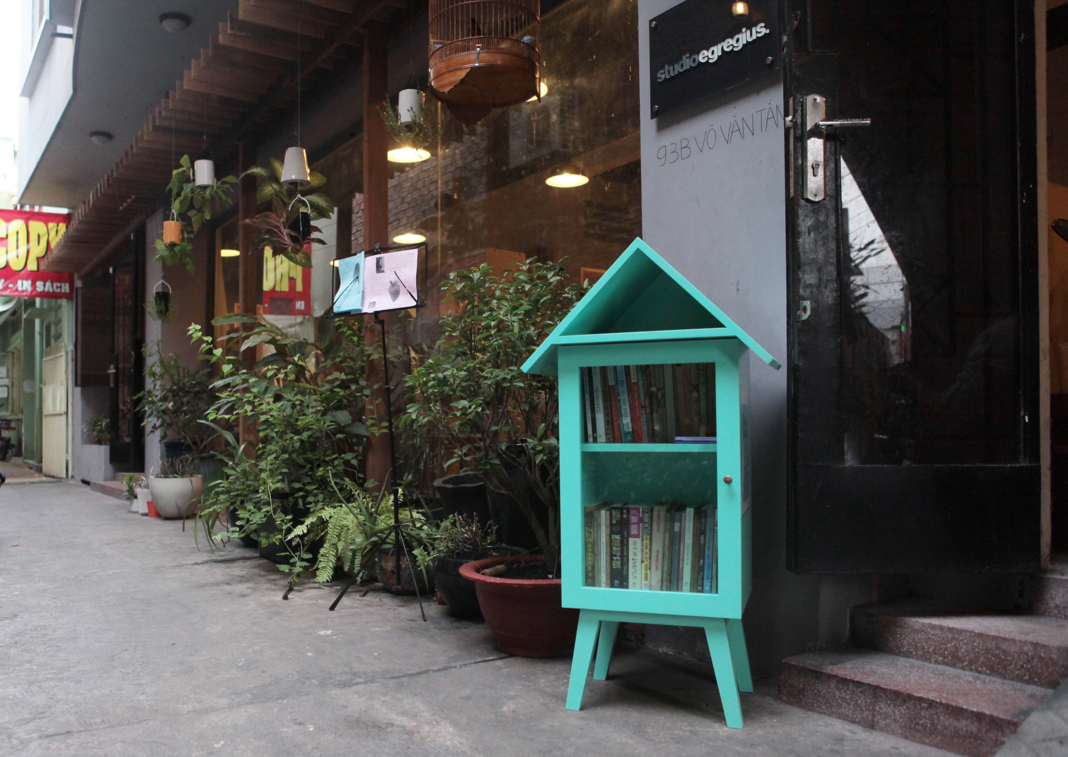 | Tủ sách được đặt ở bên ngoài cửa một quán cà phê trên đường Võ Văn Tần (Q.3). |