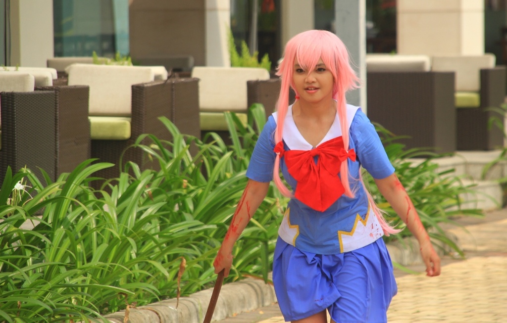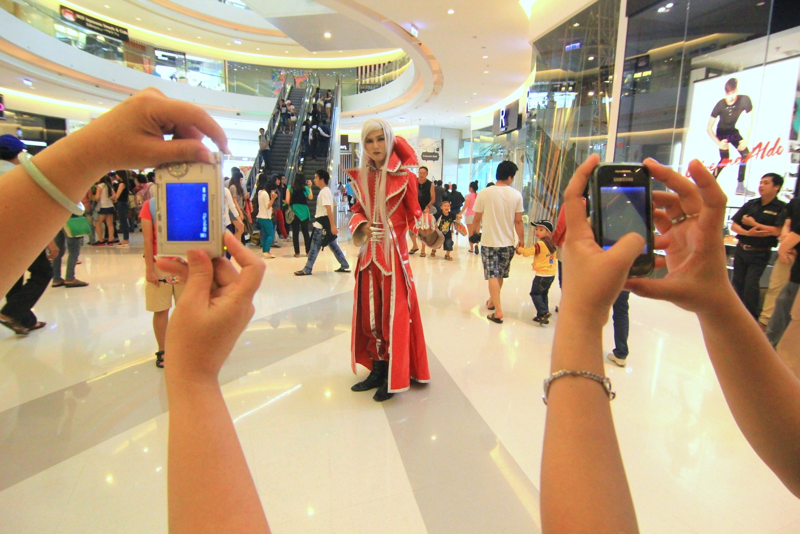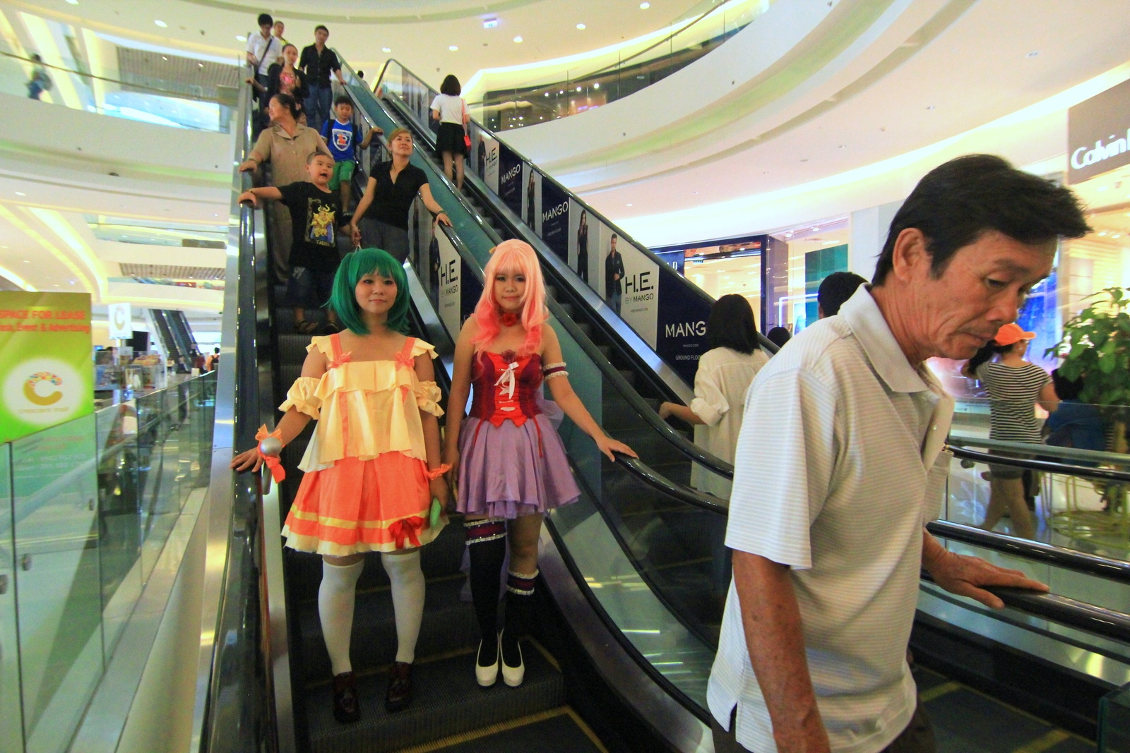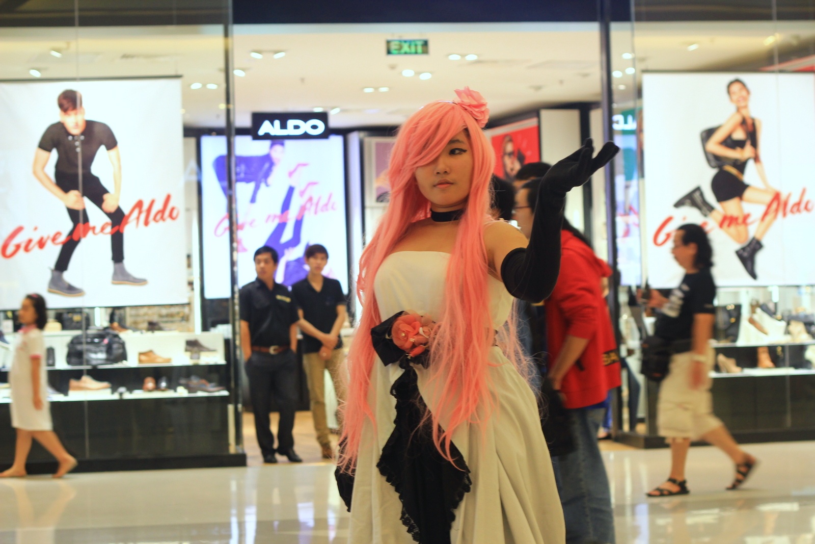| Tuy nhiên vì trời nắng nóng, nên thay vì diễn cosplay tại khu vực lễ hội, hầu hết các bạn chọn một trung tâm mua sắm cạnh đó để biểu diễn. |