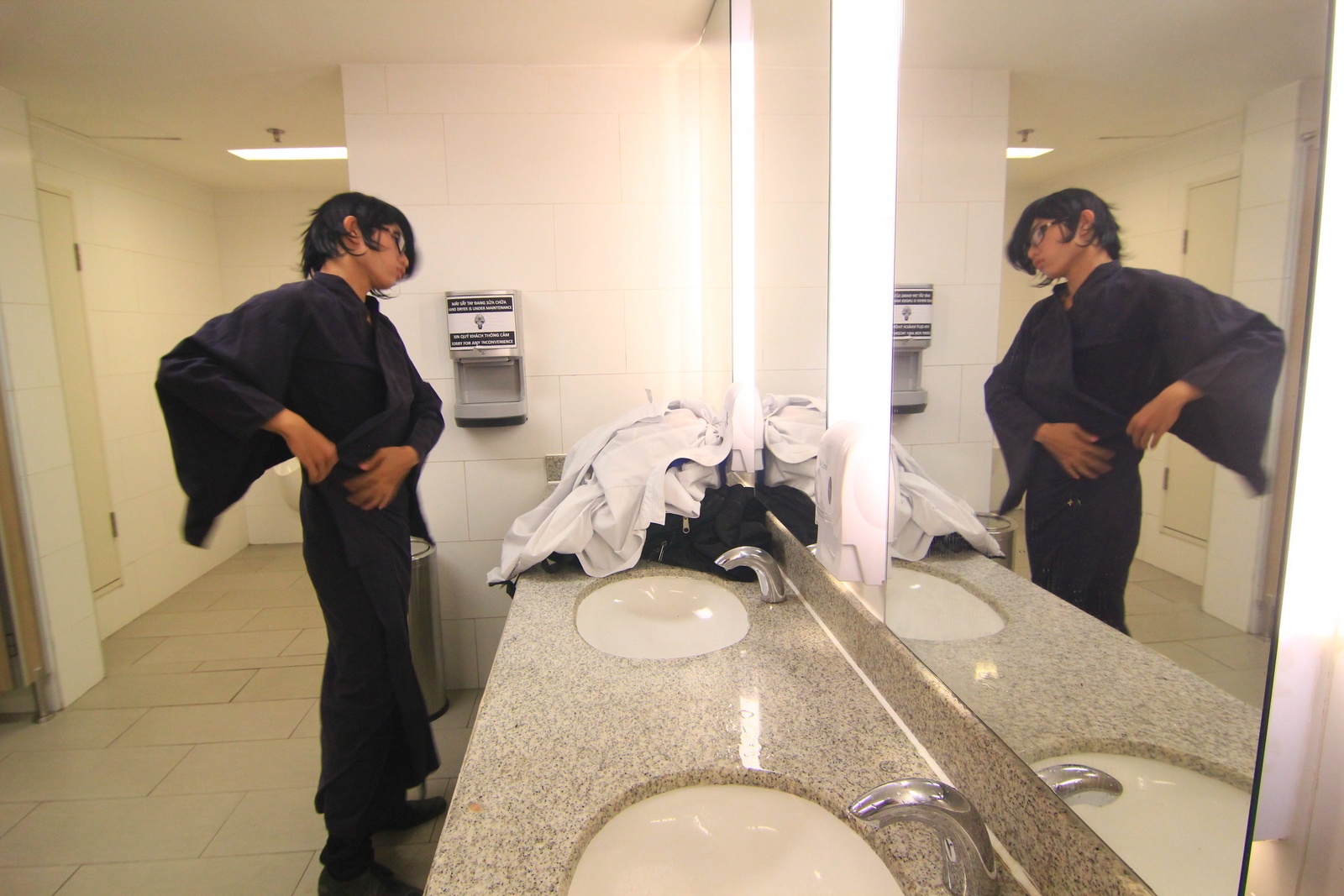 | Một bạn nam thay trang phục cosplay mới sau khi thấy nhàm chán với hình dạng hóa trang trước đó. |