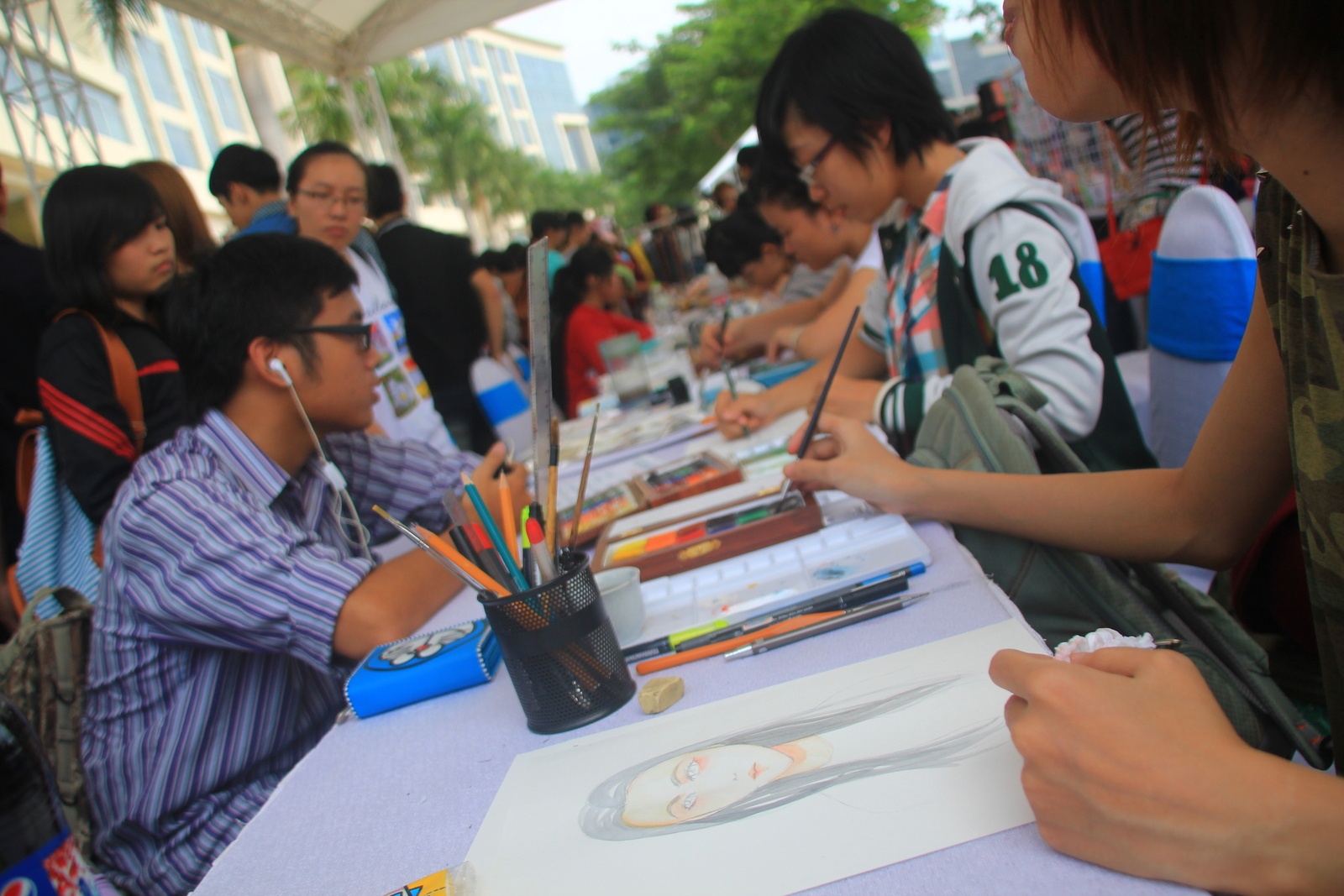 | Gian hàng vẽ tranh chibi, manga,bói bài tarot... thu hút đông bạn trẻ. |