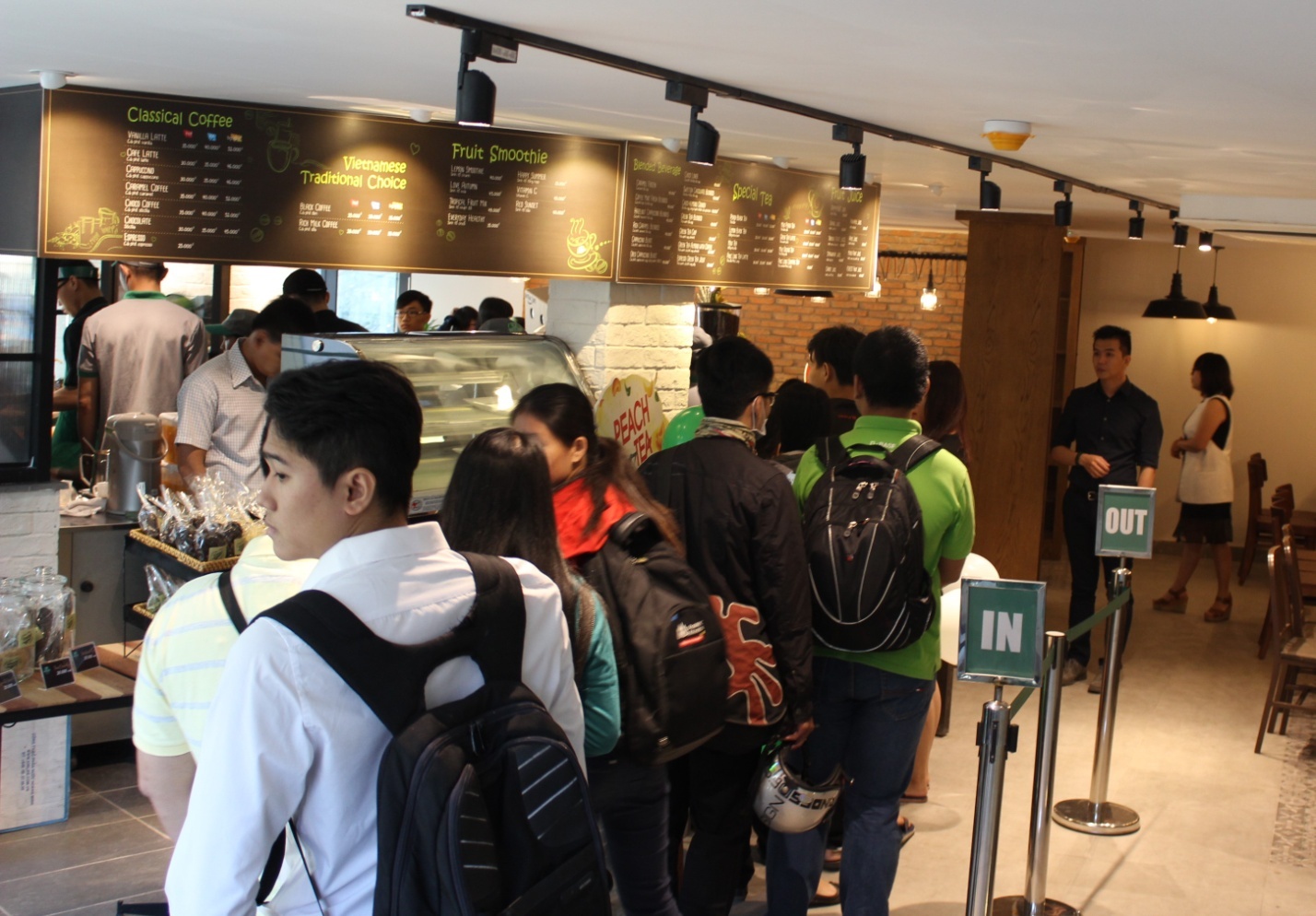 Đông đảo bạn trẻ đã đến ủng hộ và xếp hàng từ sớm để được nhận những chiếc ly sứ xinh xắn của Phúc Long trong 3 ngày khai trương 25-27/1.