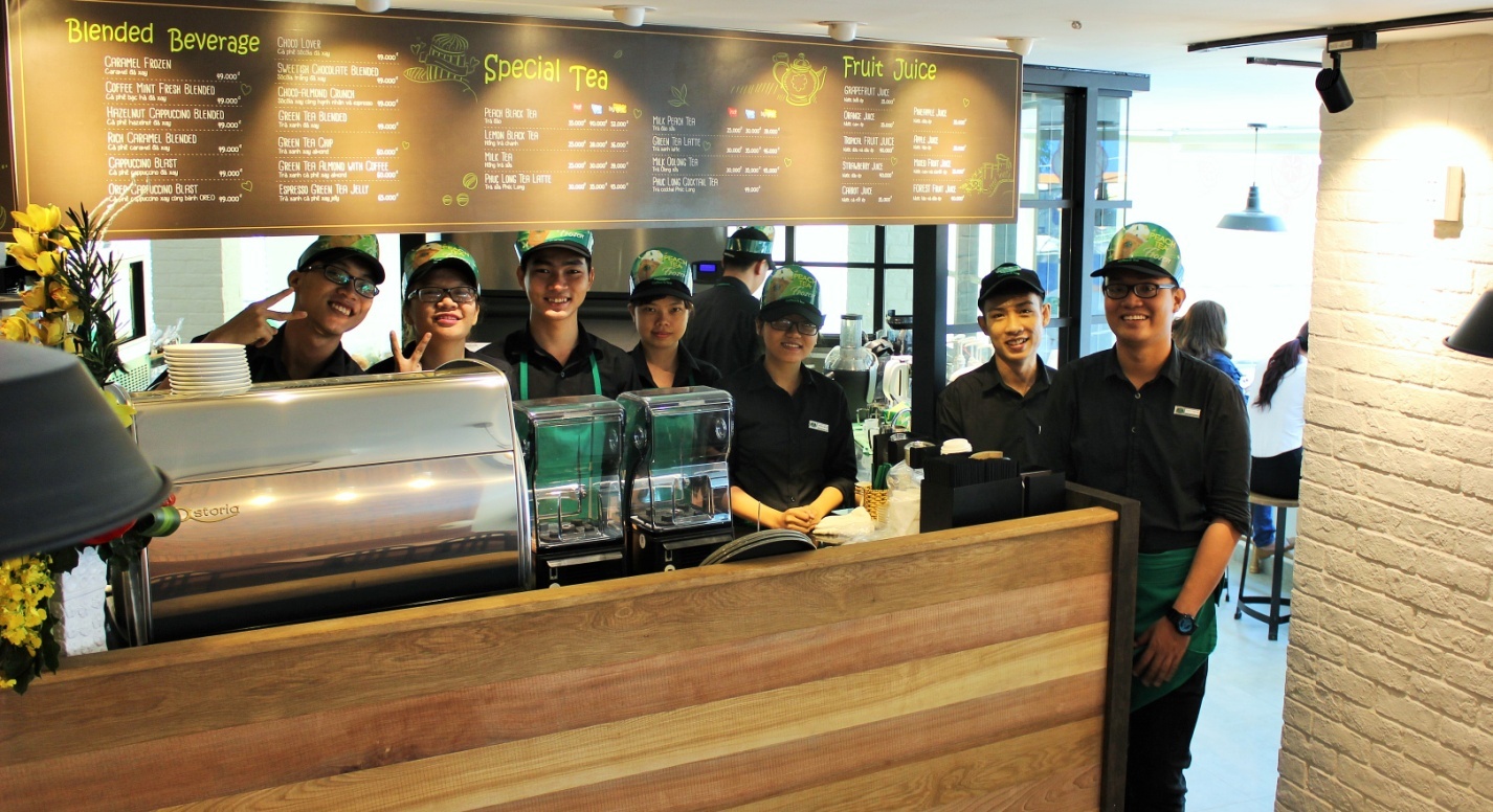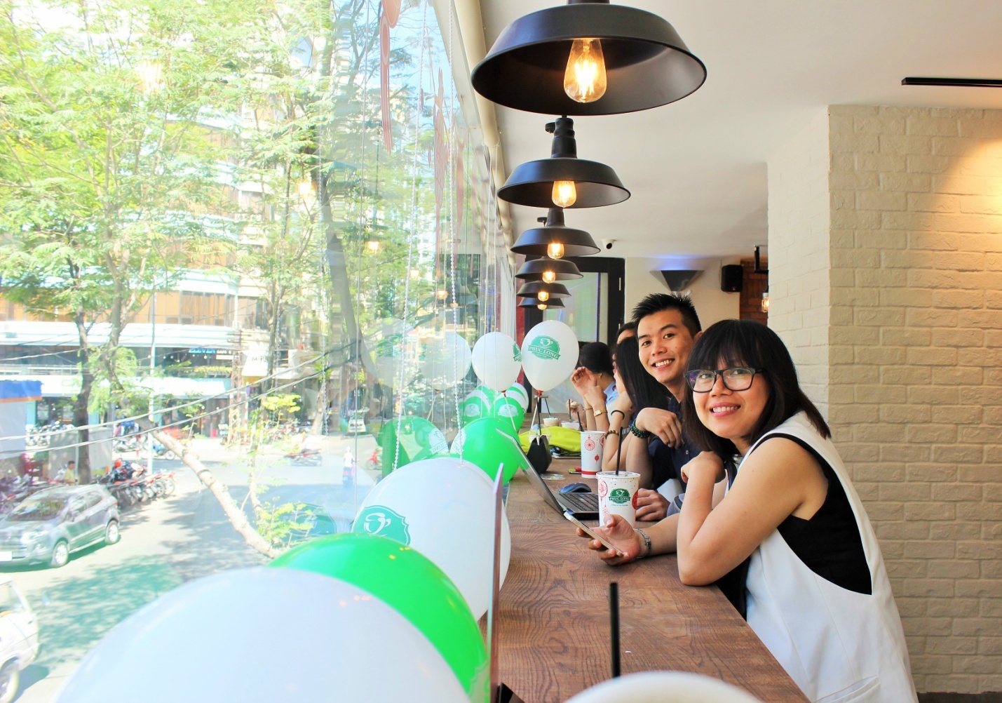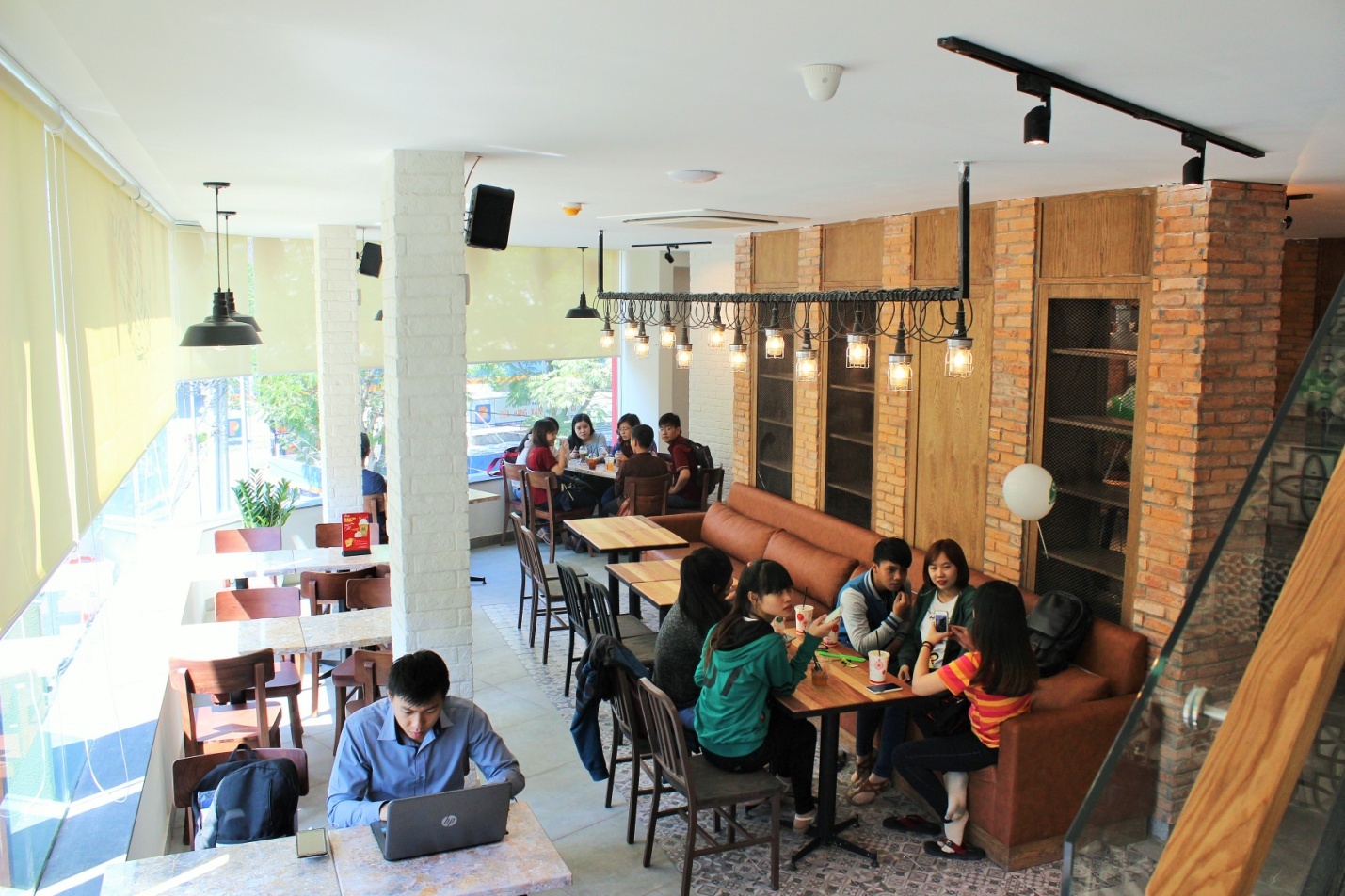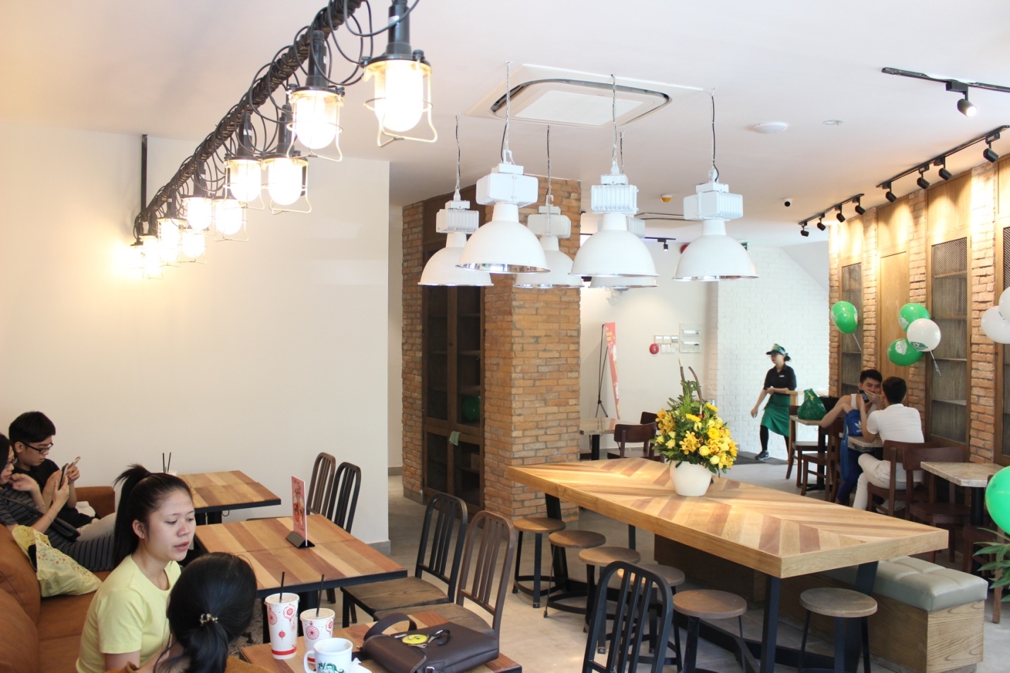 Bên cạnh không gian mang tông màu trầm nâu và xanh quen thuộc, diện tích của chi nhánh này có phần rộng hơn khi bao gồm một tầng trệt, ba tầng lầu cùng một khu sân thượng rộng rãi thoáng mát với khung cảnh tuyệt đẹp nhìn ra trung tâm thành phố.
