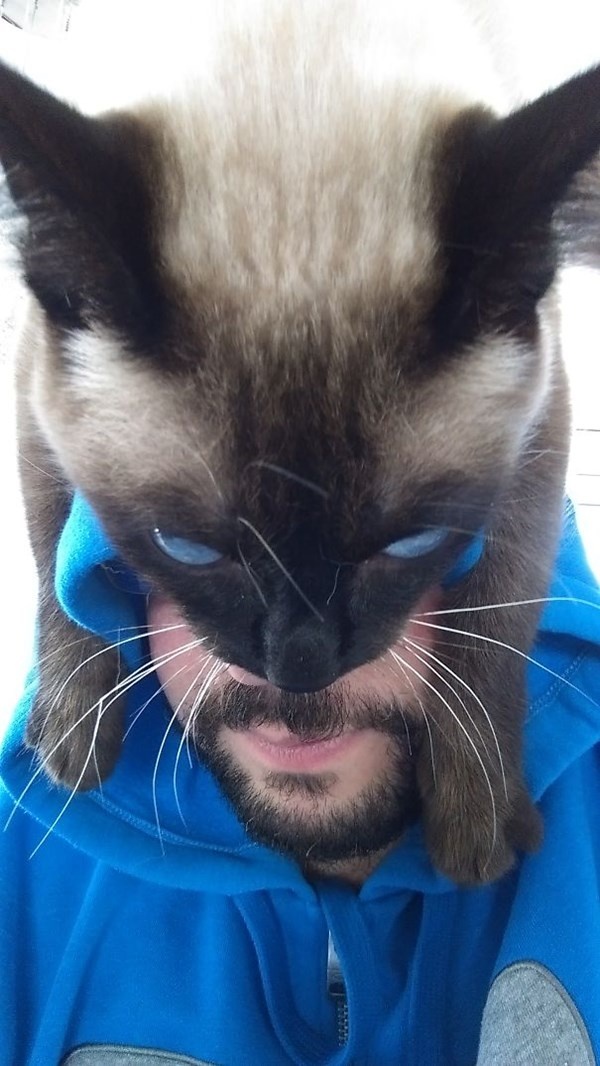 | Sau trào lưu selfie che nửa dưới khuôn mặt với đầu mèo, mới đây, nhiều bạn trẻ thế giới đã đi ngược lại trào lưu cũ bằng cách... đội mèo lên đầu. Trong những bức ảnh được chia sẻ trên mạng, có thể thấy nhiều chú mèo đã nhanh chóng làm quen với sự ấm áp ở trên đầu chủ nhân và thả lỏng người thư giãn. |