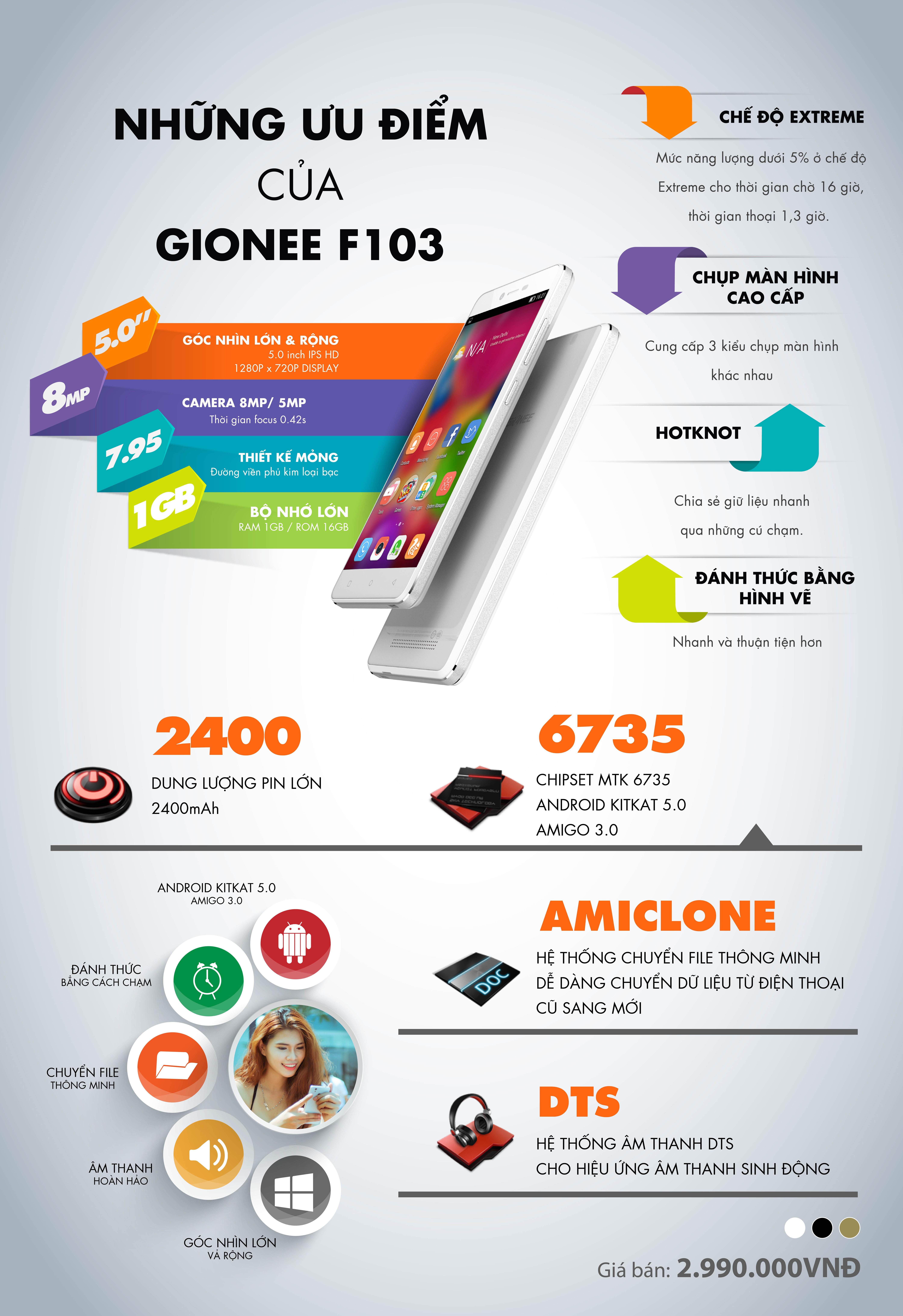 Gionee F103: Điện thoại selfie giá rẻ nhiều tính năng