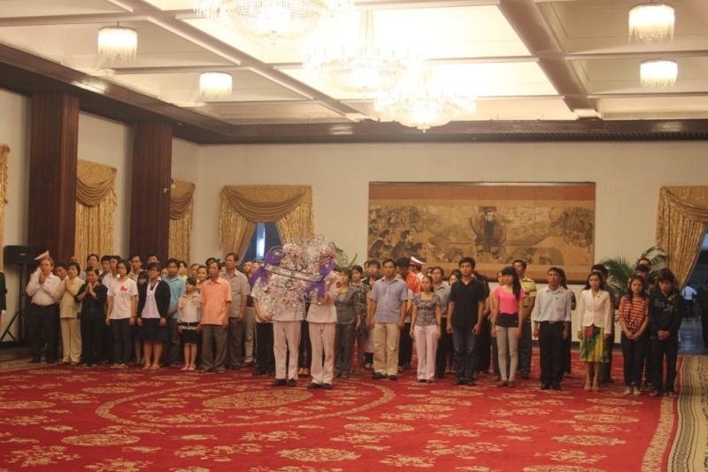 | Tại cổng dinh Thống Nhất, từng nhóm người vẫn lần lượt xếp hàng vào viếng. Ban tổ chức lễ viếng cho biết vẫn chưa có kế hoạch ngừng tiếp khách. |