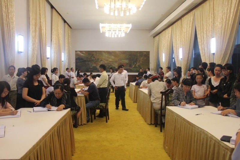 | Trong phòng ghi sổ tang vẫn còn nhiều người chờ tới lượt. |