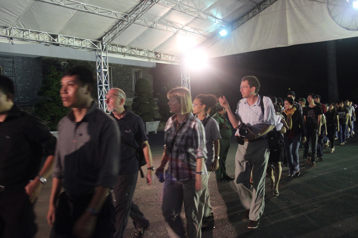 | Khách vẫn tiếp tục tiến vào hội trường dù ngoài trời đã tối đen. |