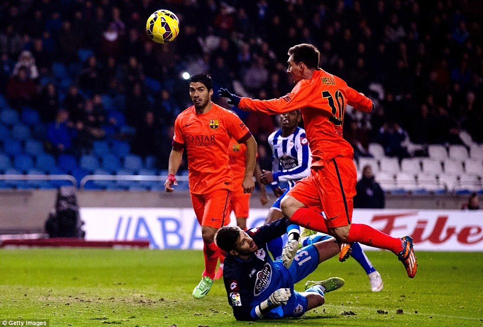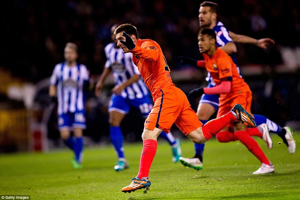 Cú hat-trick của Messi giúp Barca đại thắng Deportivo 4-0 trong trận đấu lúc 1h ngày 19/1. Thành tích này cũng giúp siêu sao người Argentina tiến sát kỷ lục của Crisitiano Ronaldo.