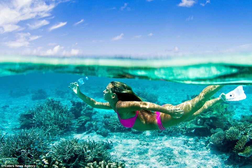 | Trong chuyến đi, Alison quyết định chụp hành động nhặt rác, dọn dẹp bãi biển nhằm kêu gọi người dân và du khách bảo vệ thiên nhiên, cảnh quan của khu du lịch thiên đường. |