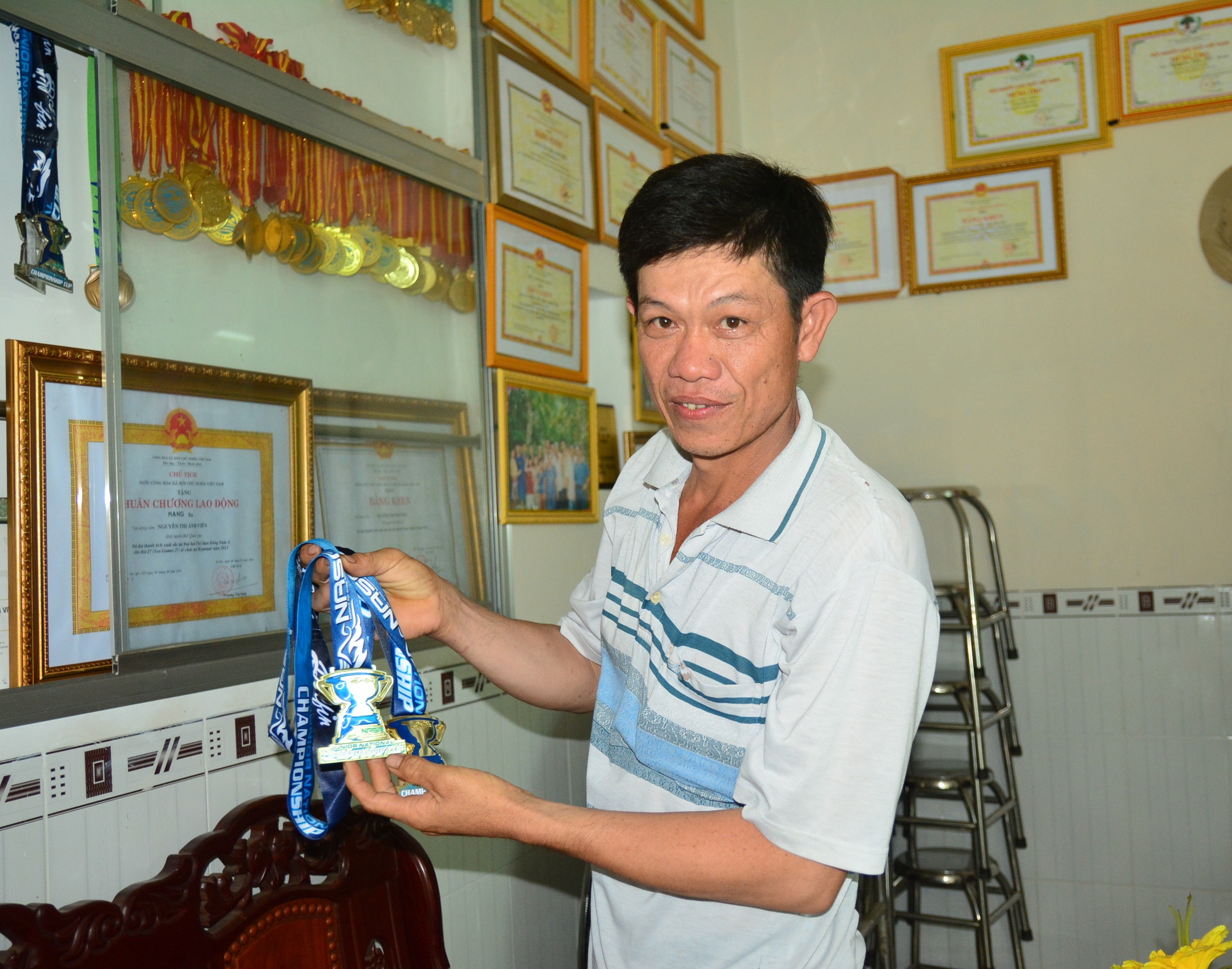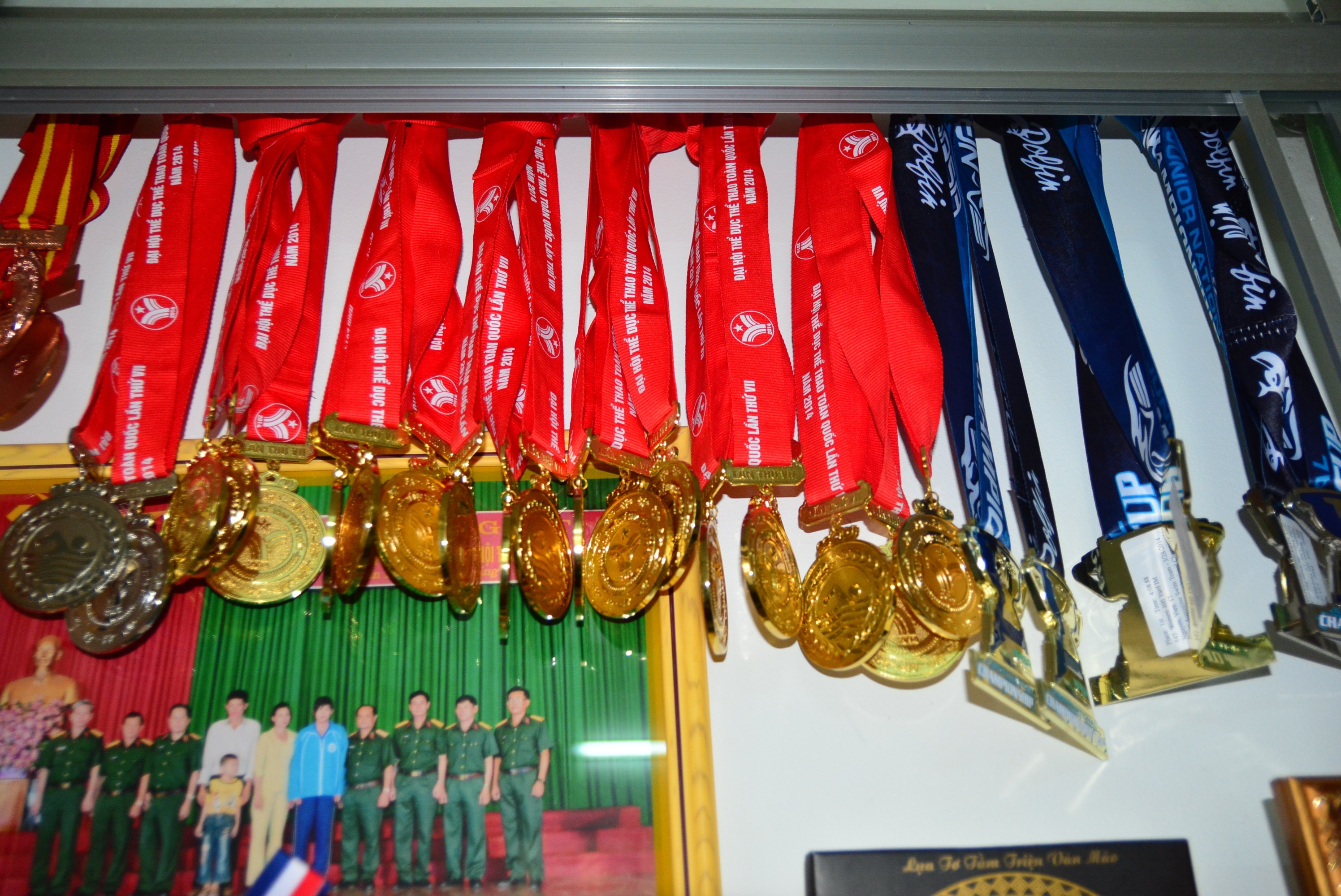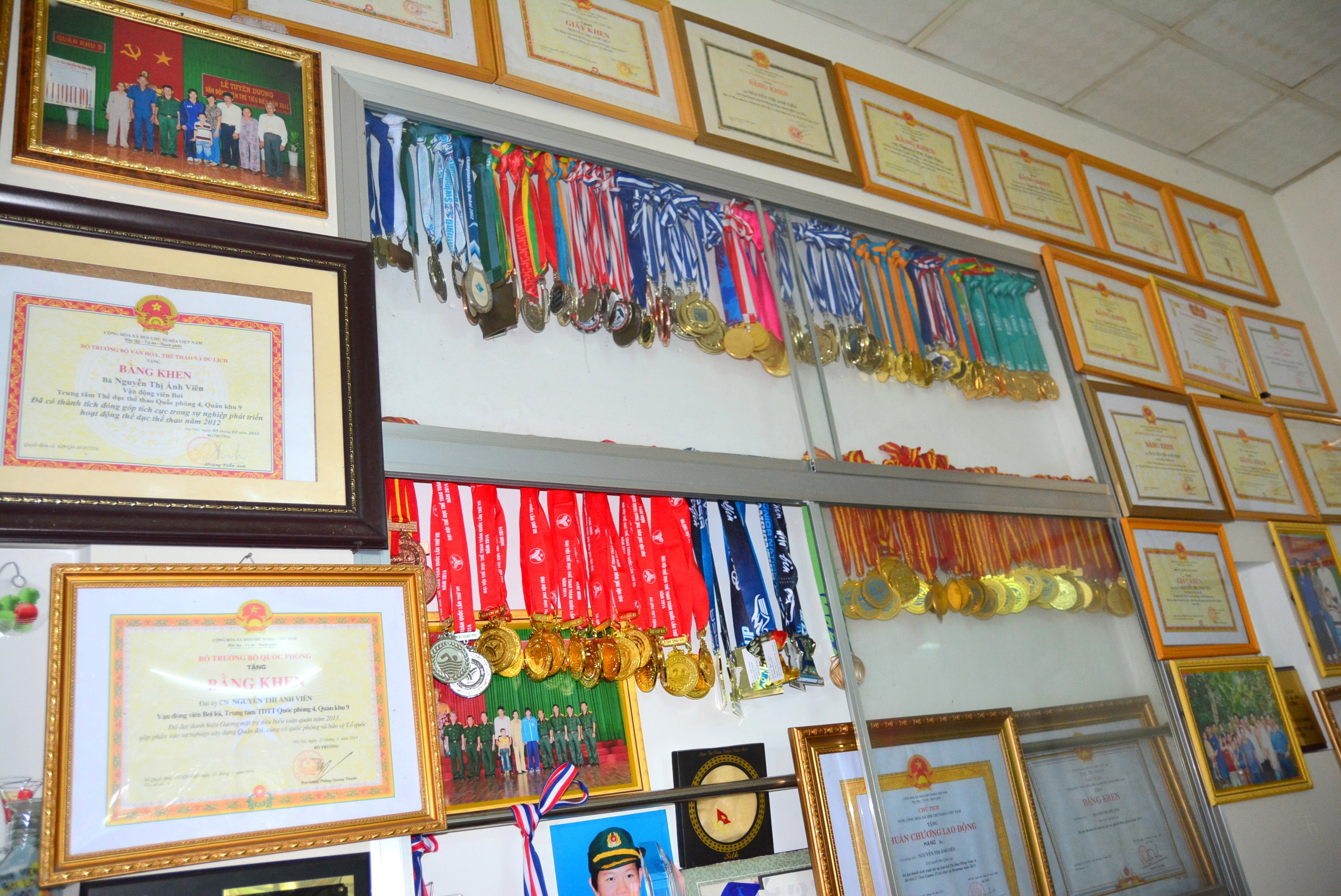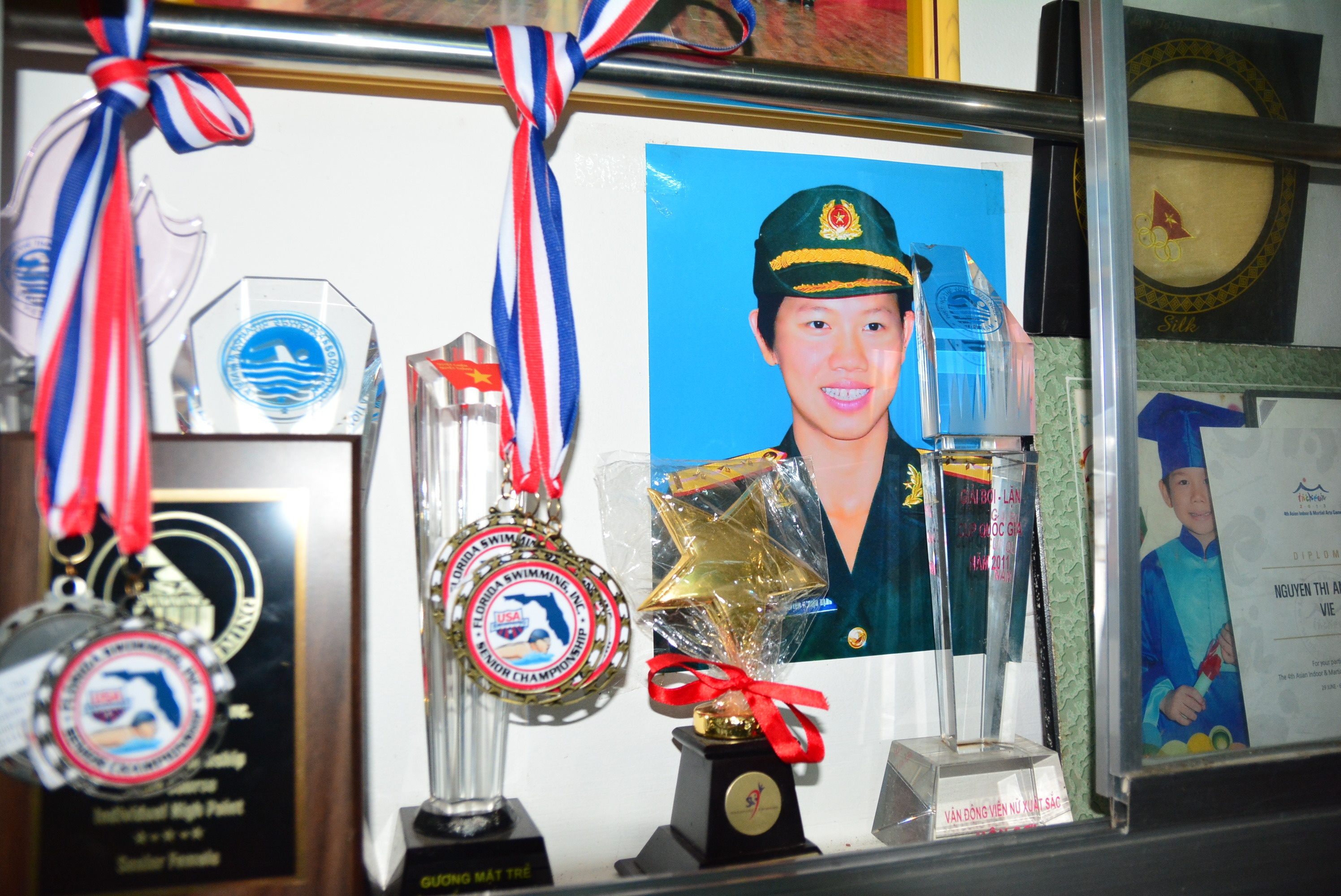 | Một góc nhỏ trưng chiến tích của nhà vô địch SEA Games. Ánh Viên dù đạt nhiều thành tích cao nhưng rất giản dị, hòa đồng. Cô không thích việc trưng thành tích vì thấy ngượng. Nhưng sau đó, bố của cô phải làm việc này bởi nếu không bảo quản tốt, một số huy chương, bằng khen có thể bị hỏng. |