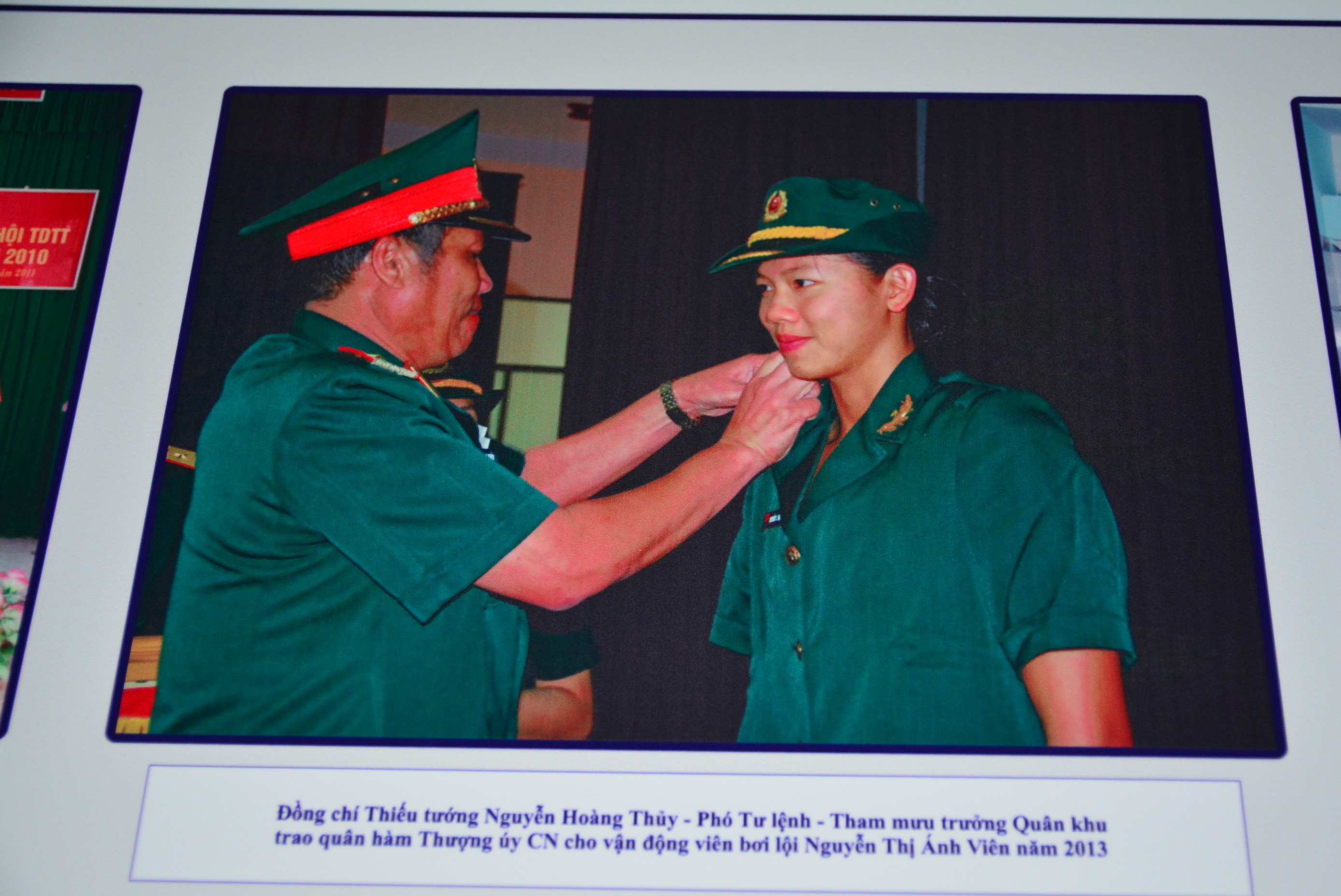 Nhờ những thành tích xuất sắc trong những năm qua, Ánh Viên đã được trao quân hàm Đại úy trước niên hạn.