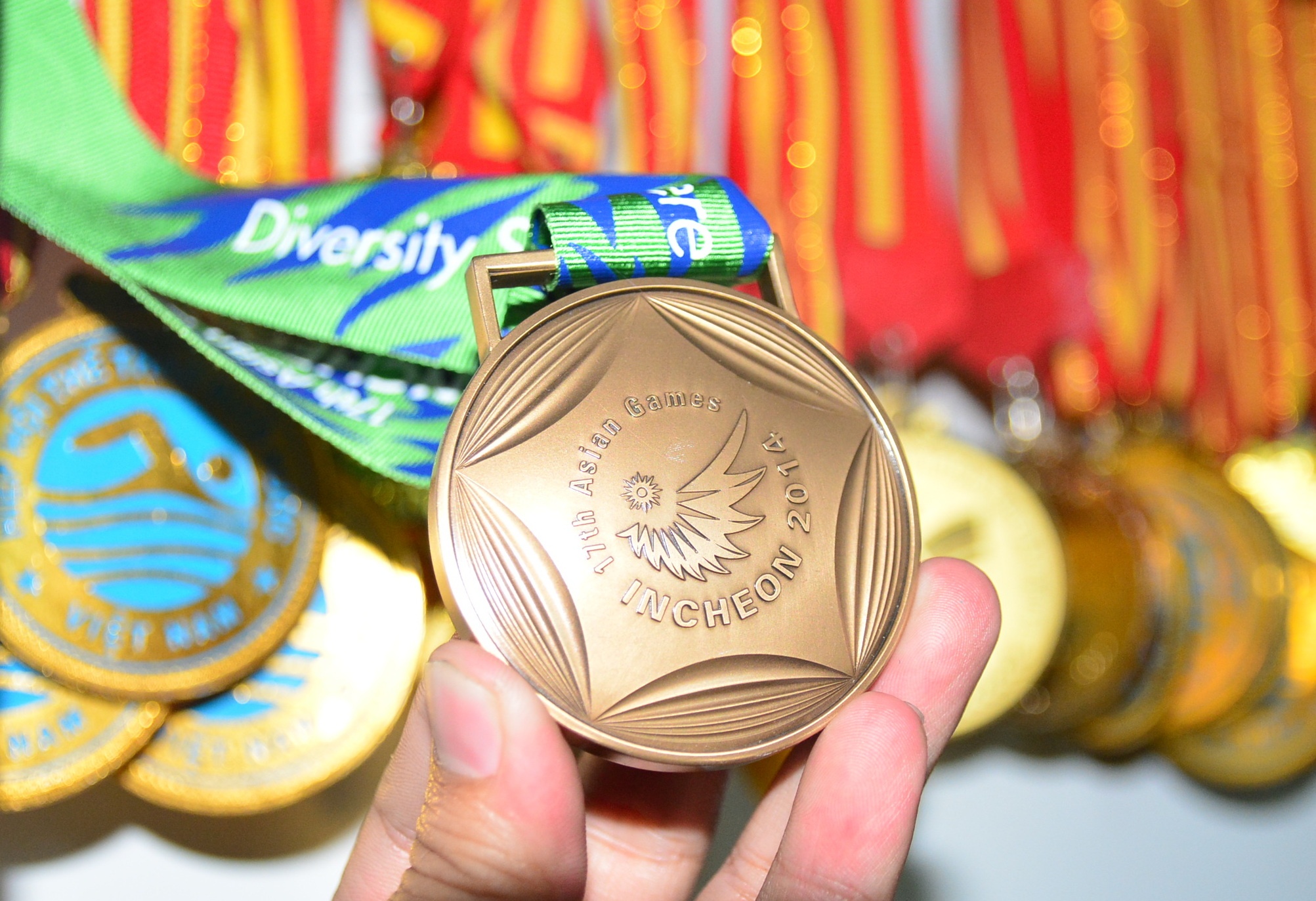 | Tấm HCĐ ASIAD mà Ánh Viên nhận được cuối năm ngoái ở Incheon. Ở giải đấu này, cô đoạt HCĐ ở nội dung 200 m ngửa nữ và 400 m hỗn hợp. Đây là huy chương châu lục đầu tiên của thể thao Việt Nam ở môn bơi. |