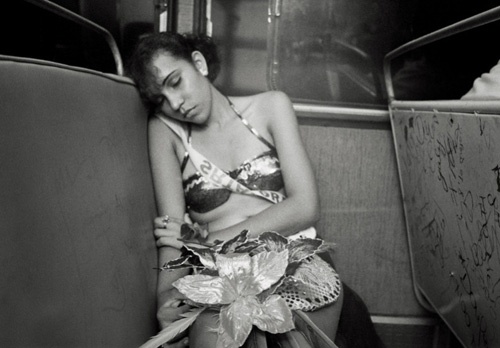 | Cô gái trẻ ngủ trên tàu điện trên đường về nhà sau khi đoạt giải tại một cuộc thi sắc đẹp quy mô nhỏ. Mệt mỏi là điều cảm nhận rõ nét nhất trên gương mặt. |