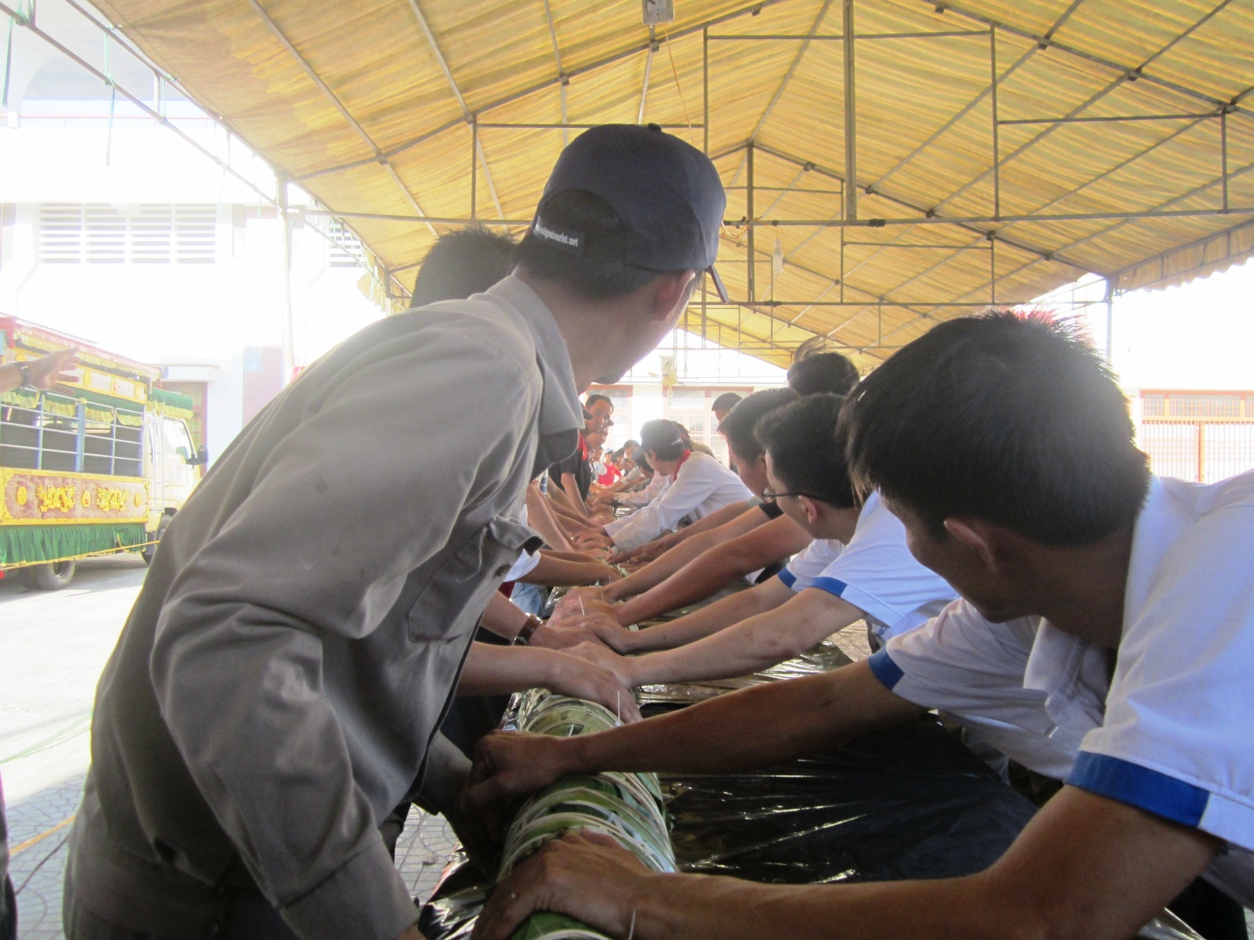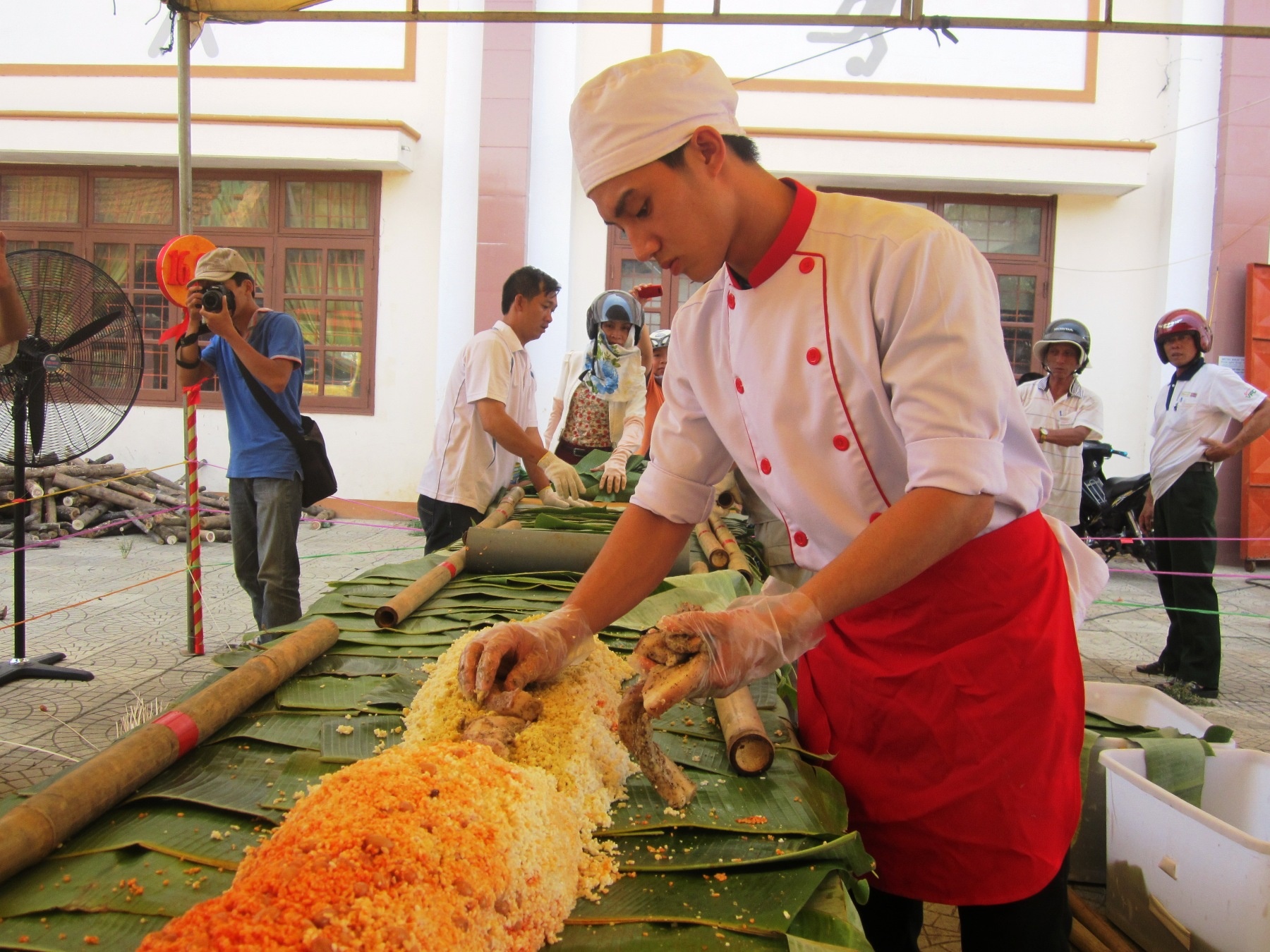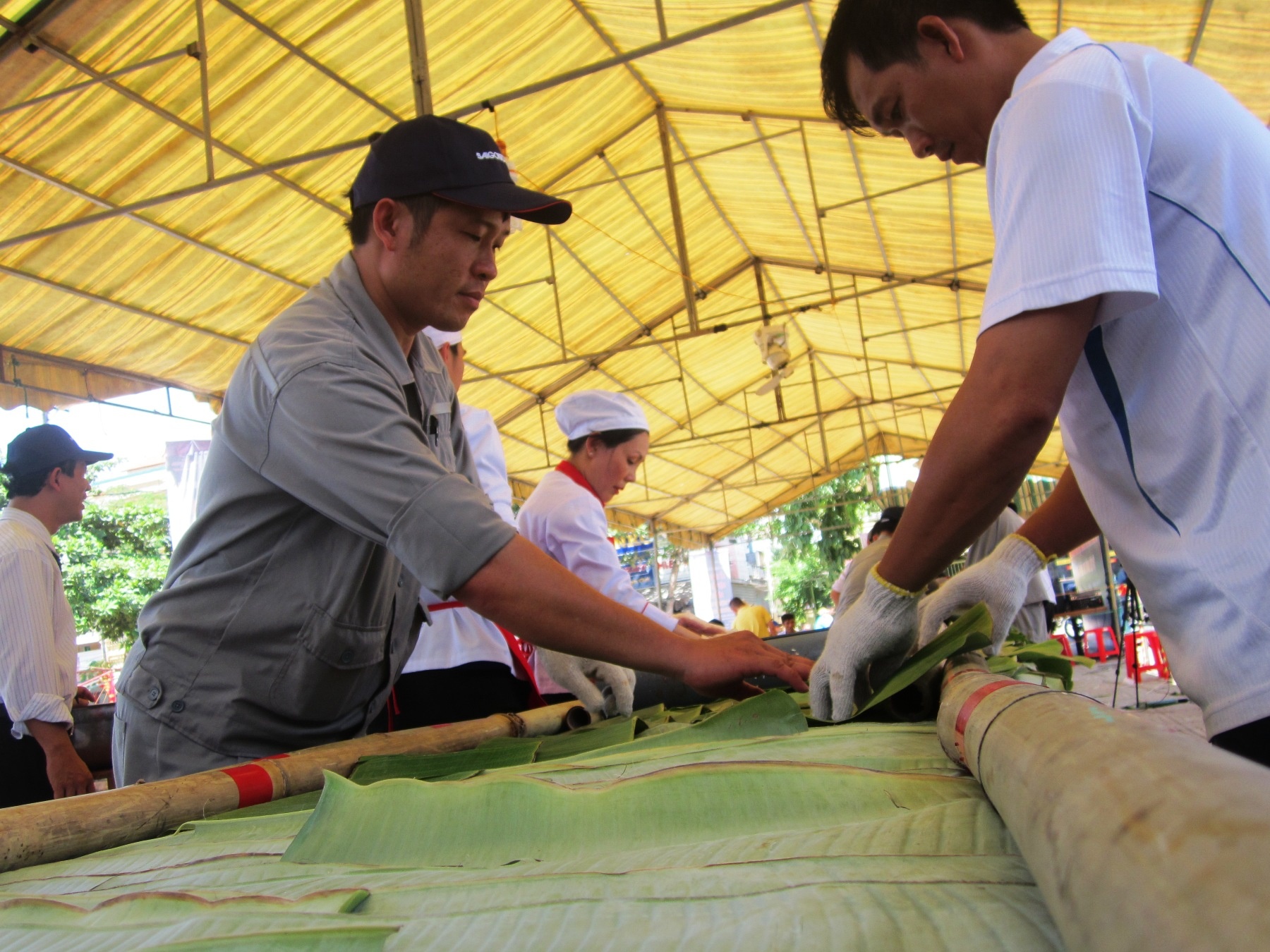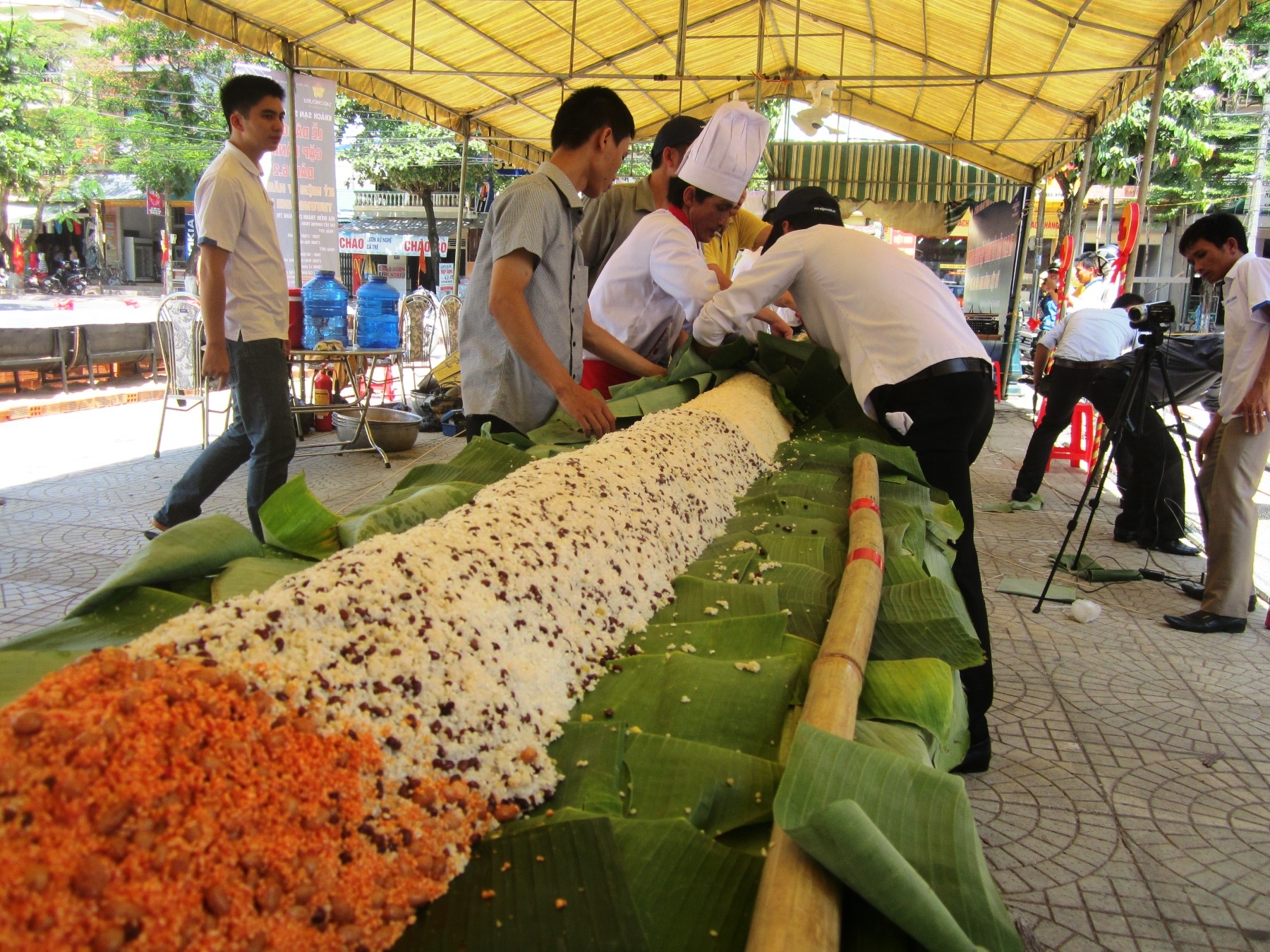 | Được sự cho phép của Sở Văn hoá-Thể thao và du lịch tỉnh Quảng Trị, Khách sạn Sài Gòn-Đông Hà đã huy động nhân viên để gói chiếc bánh tét dài 16,2 m để làm Lễ dâng hương lên các anh hùng liệt sĩ tại Thành Cổ-Quảng Trị. |