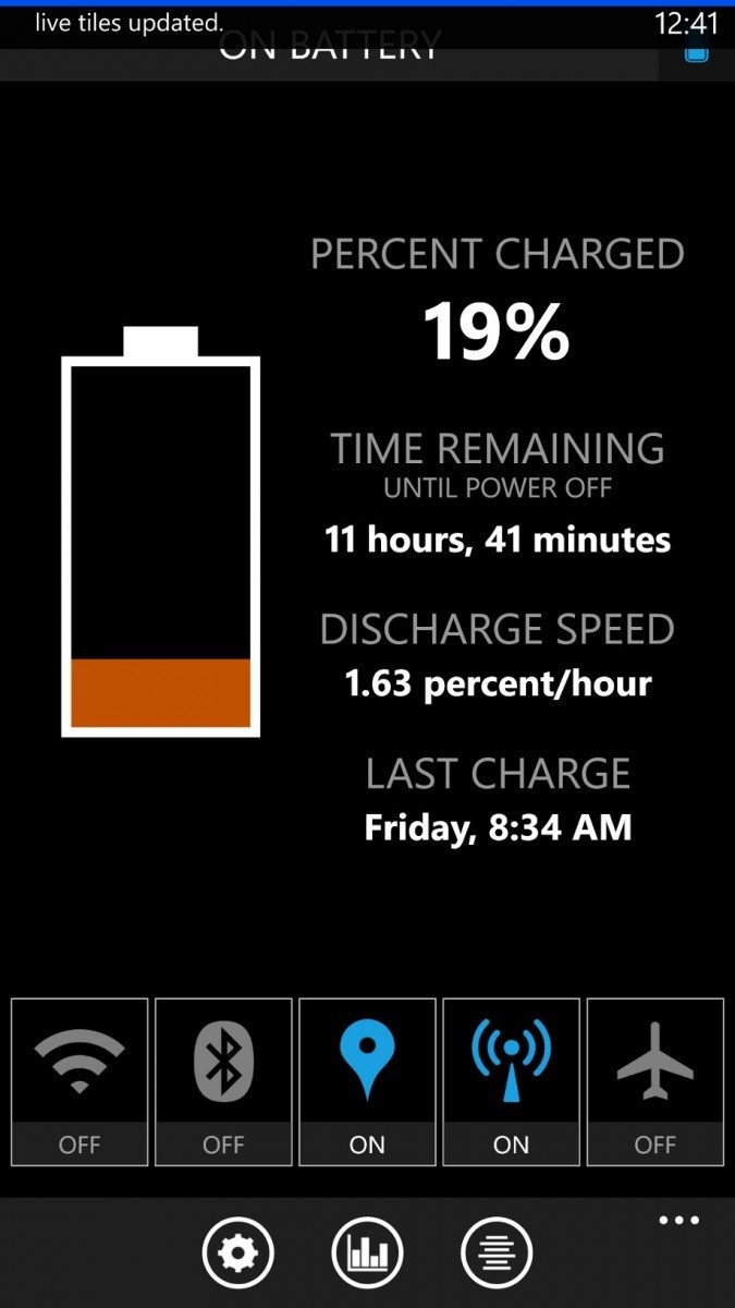 Điểm nổi trội ở Lumia 1520 là dung lượng pin 3400mAh. Với 19% dung lượng pin, "chú dế" này sẽ phục vụ bạn gần 12 tiếng mới "đi ngủ".