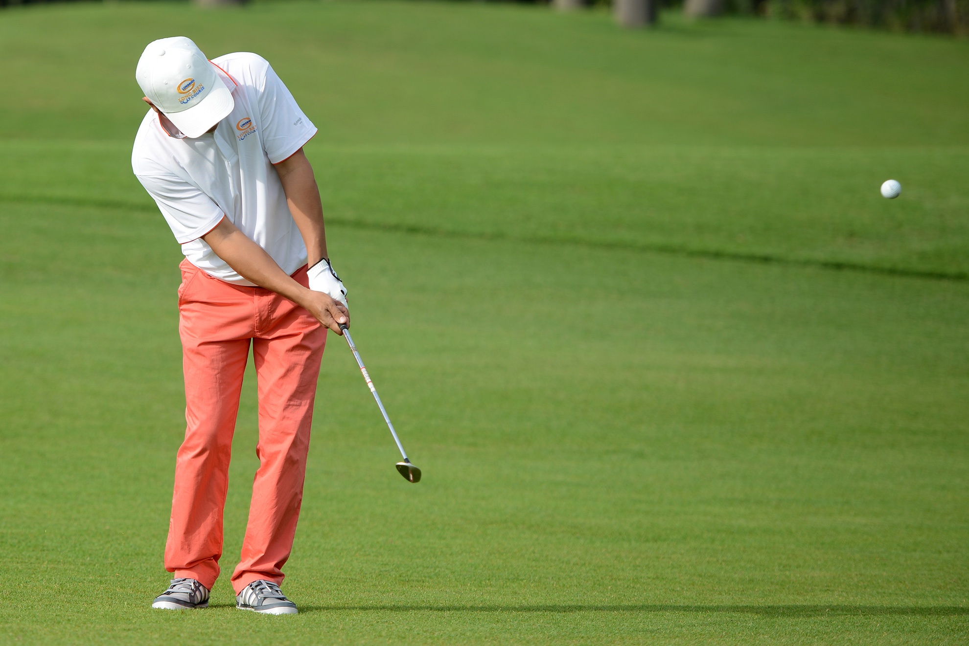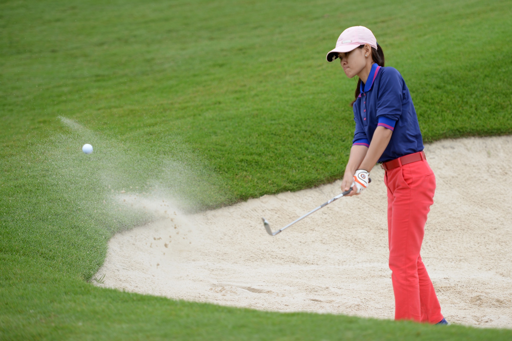 Cú đẩy bóng chuẩn xác giúp golfer Mai Tuyền giành giải nhất bảng Nữ.