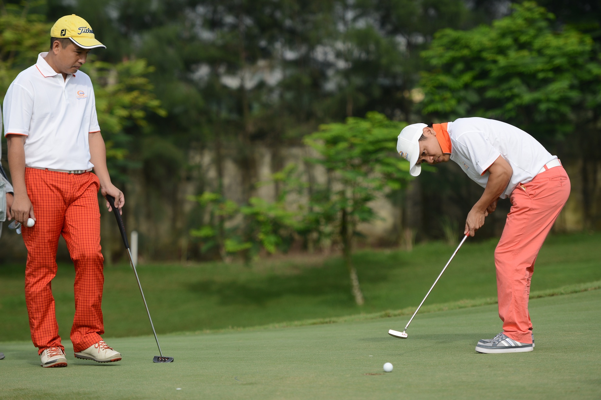 Tiết trời dịu mát của mùa thu Hà Nội giúp các golfer không chuyên thỏa sức thi thố tài năng.