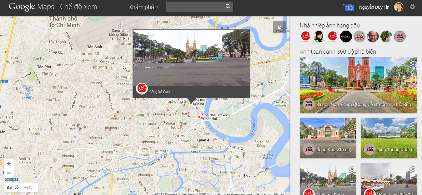 Riêng tại TP.HCM, người dùng Google Maps đã có thể chiêm ngưỡng toàn cảnh khu vực nhà thờ Đức Bà, tuyến đường Nguyễn Thị Minh Khai, kênh Nhiêu Lộc, Nhà hát lớn, Dinh Thống Nhất, chợ Bến Thành... Các quận trung tâm như Q.1, Q.3, Q.10 tập trung nhiều hình ảnh nhất. Các quận ở ngoại thành chỉ có một đến hai địa điểm được ghi hình và chia sẻ trên bản đồ. Cách thức mà các cộng tác viên của Google ghi lại hình ảnh 360 độ được mô tả trong video dưới đây.