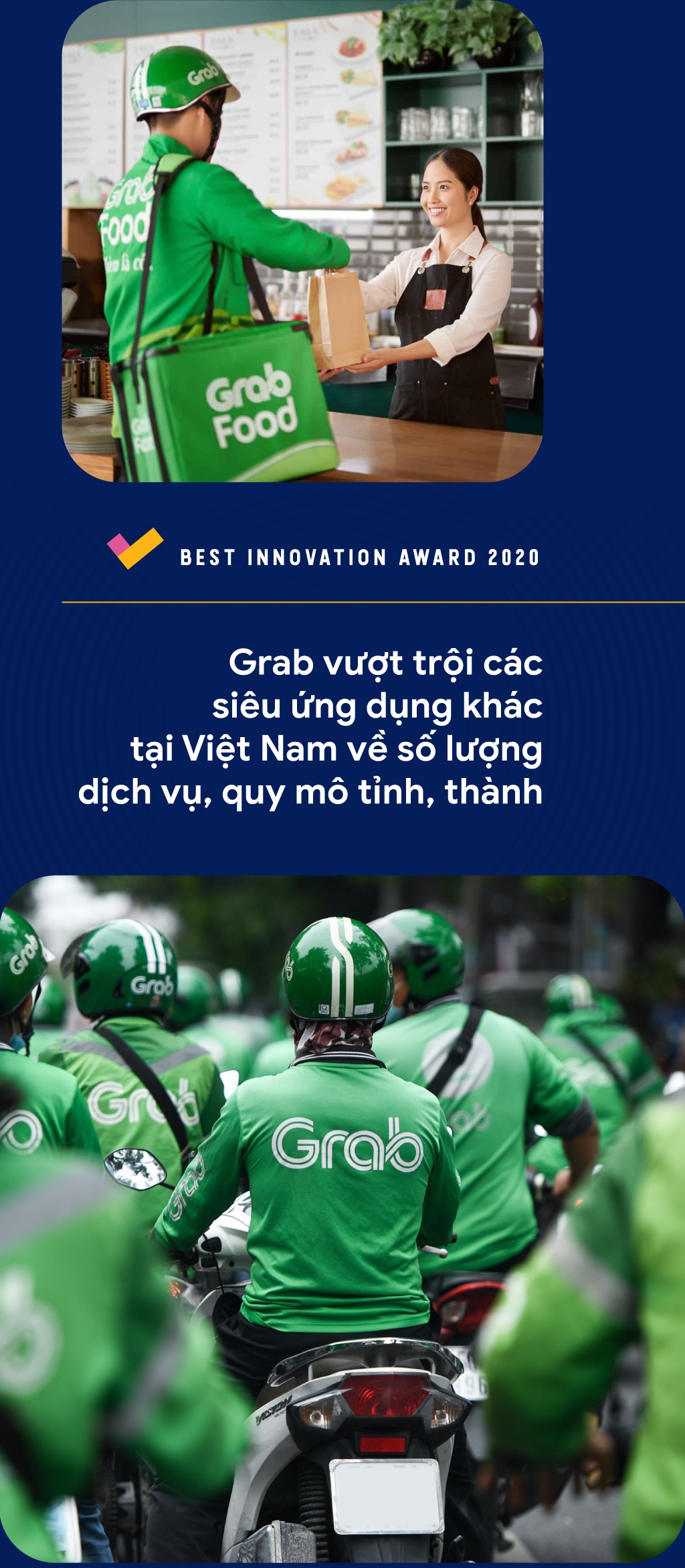 Sự đa dạng dịch vụ, độ phủ sóng rộng giúp Grab được người dùng yêu thích, bình chọn nhiều nhất trong hạng mục siêu ứng dụng năm 2020.
