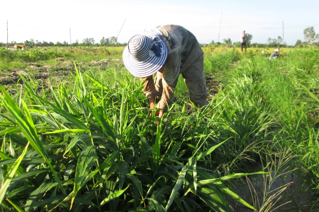 | Ông Nguyễn Văn Thảo ở ấp 1, xã Long Trị có hơn 10 năm trồng gừng chia sẻ, đất trồng cần phải làm tơi xốp, để trồng gừng thường để tro kết hợp với phân chuồng trộn đều. Trồng gừng phải lên luống cao ráo với chiều rộng 1,2 m, đường rãnh 0,4m để dễ thoát nước và chăm sóc tránh tình trạng gừng trồng gặp con nước lớn hay mưa dầm sẽ gây thối củ, chết |