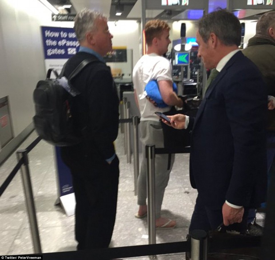Báo Daily Mail đăng tải tấm ảnh chụp HLV Guus Hiddink tại sân bay Heathrow (London) của một người dùng Twitter. Theo BBC, hiện ông Hiddink đang nghỉ ngơi tại một khách sạn ở London.