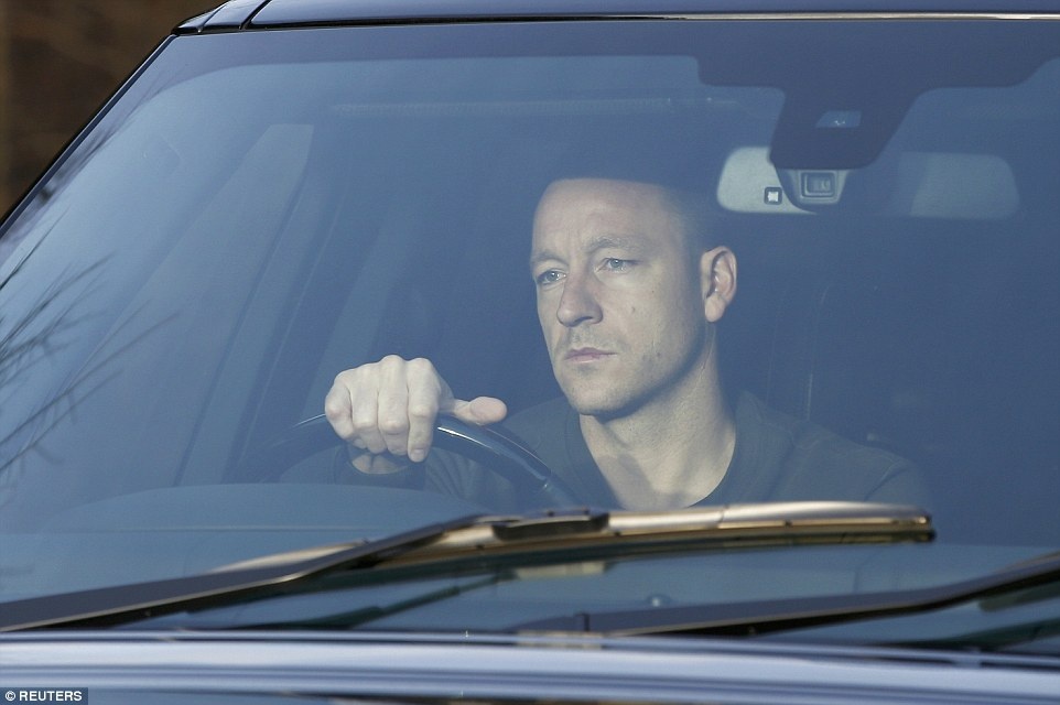 | Đội trưởng Terry lái xe rời khỏi sân tập với vẻ mặt đăm chiêu. Ảnh: Reuters. |