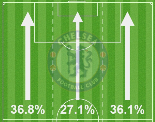 | Chelsea tổ chức tấn công ở hai bên cánh khá cân bằng. Ảnh: Telegraph. |