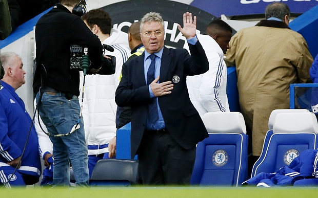 | Guus Hiddink hài lòng về tinh thần thi đấu của cầu thủ Chelsea. Ảnh: Telegraph. |