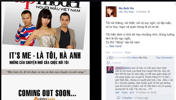 | Hà Anh khoe sắp ra sách có những tiết lộ về Next Top Model trên fanpage. |