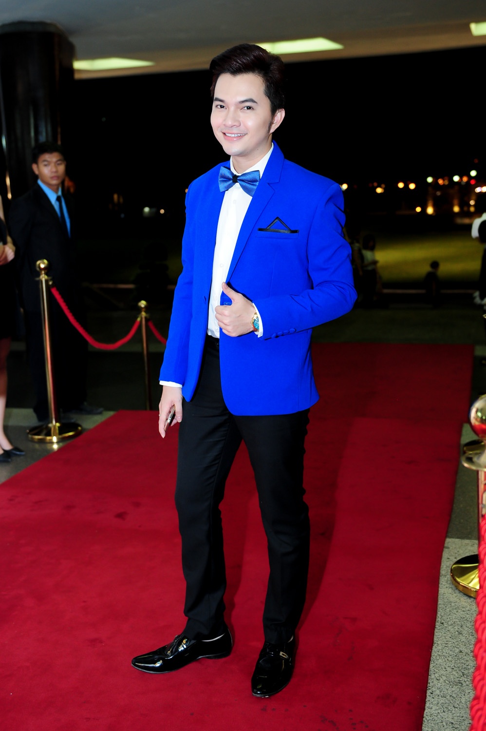 | Nam ca sĩ Nam Cường chọn vest xanh cobalt hiện đại, bắt mắt. |