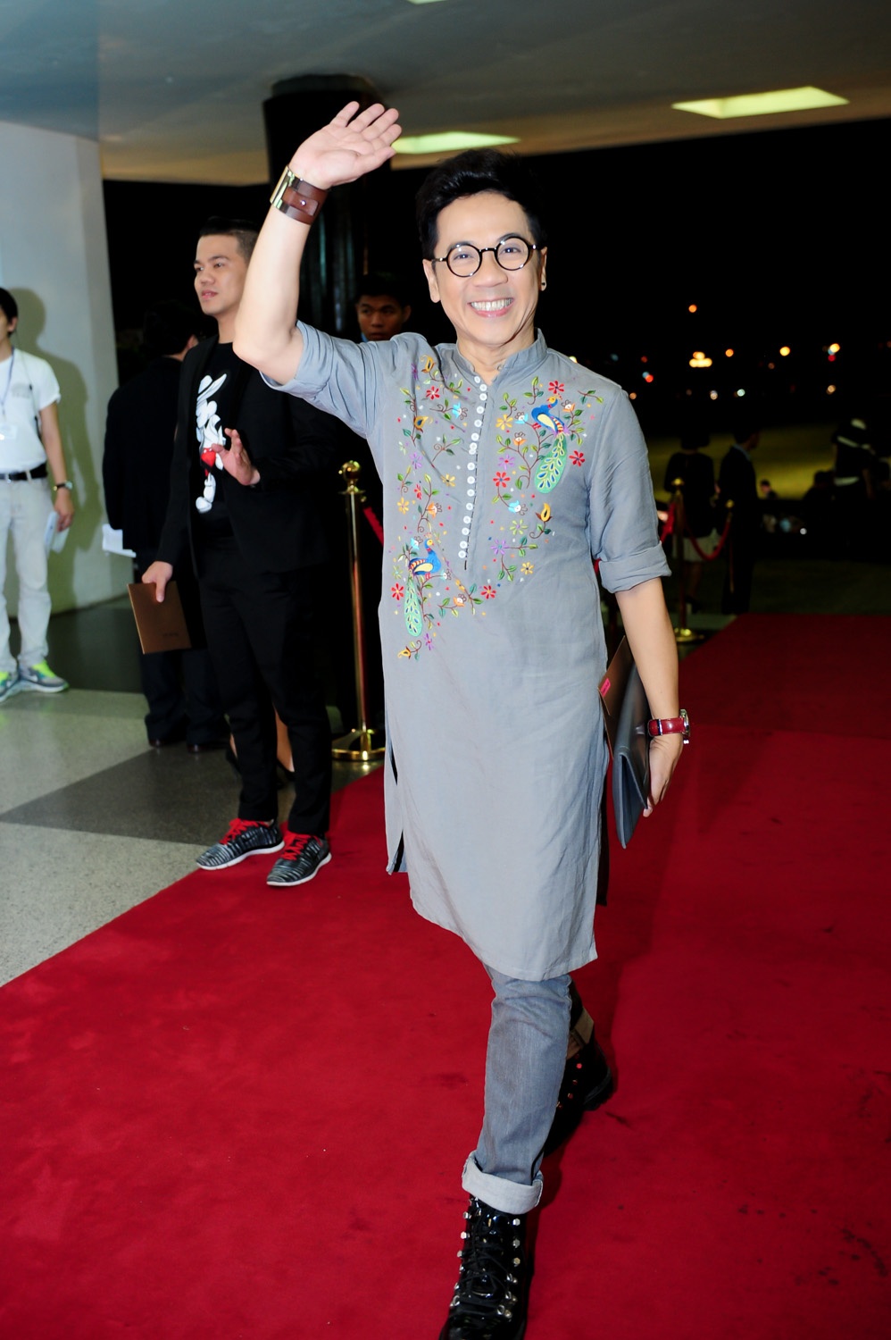 | Đạo diễn Việt Tú đảm nhận vai trò tổng đạo diễn chương trình. Trên thảm đỏ, anh nổi bật với bộ cánh gam trắng, áo thêu họa tiết cá tính. |