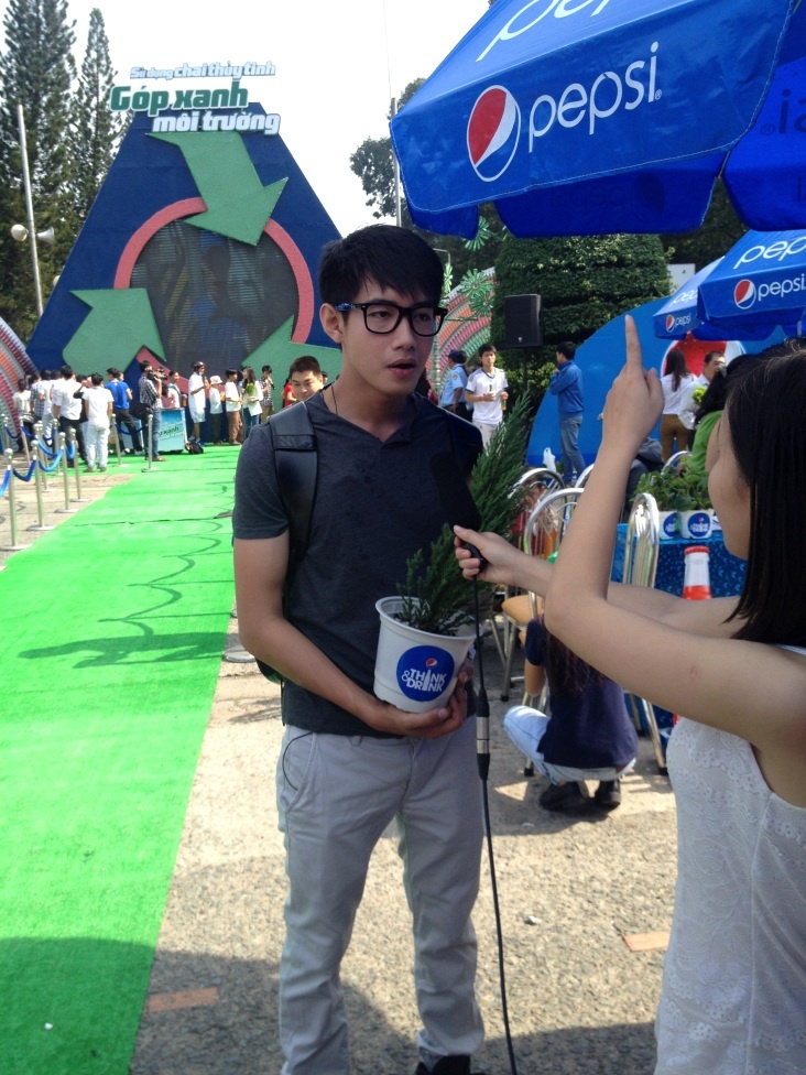 Nhằm hưởng ứng chiến dịch Uống chai sành điệu, góp xanh môi trường, ca sĩ Hà Anh Tuấn, vũ công Quang Đăng cũng đã kịp đến buổi offline tổ chức ở công viên Lê Văn Tám (TP.HCM) để hưởng ứng phong trào thiết thực này.