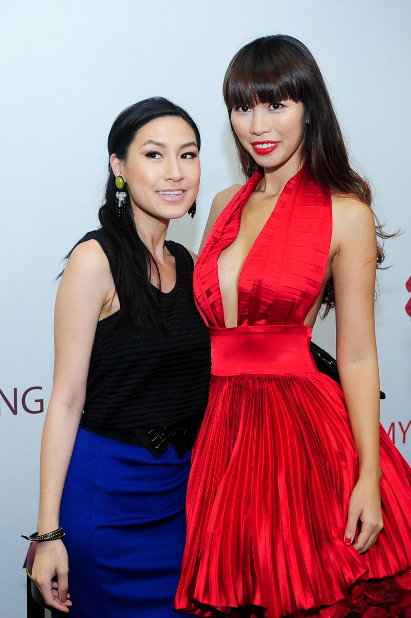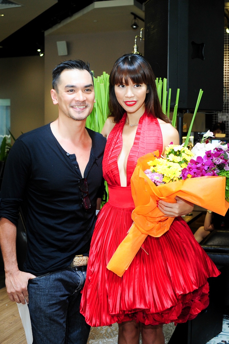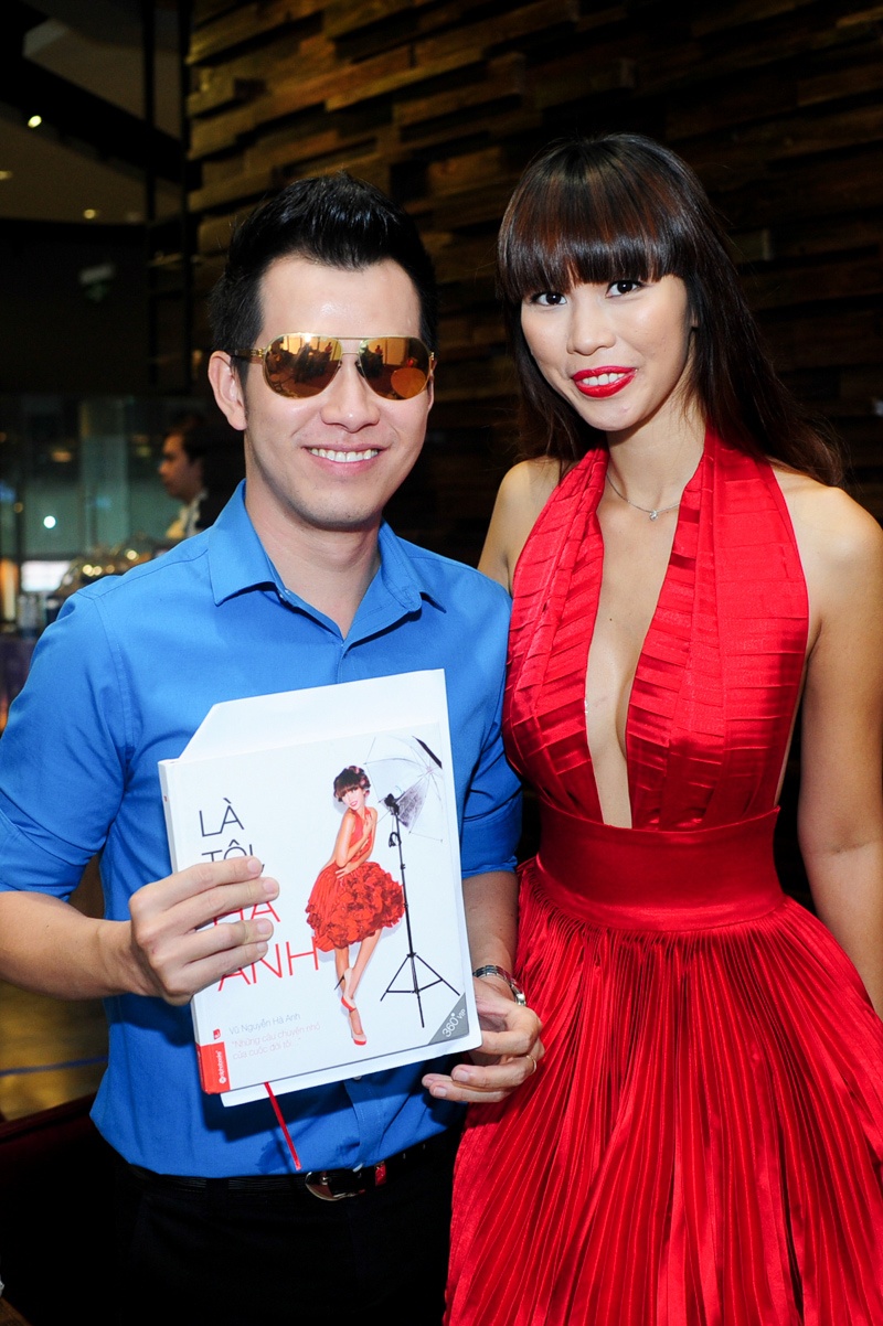 Xuất hiện trong buổi họp báo cô nàng người mẫu đa tài lộng lẫy trong bộ trang phục với tùng hoa đỏ rực rỡ của thương hiệu Gosto mà cô đã từng mặc khi thực hiện hình ảnh trang bìa trong cuốn tự truyện đầu tay của mình. Trong khi đó, em gái Hà My tuy không sở hữu chiều cao khủng như chị nhưng lại có gương mặt mũm mĩm, dễ thương. Hà My cũng khoe vẻ gợi cảm với váy quây ngực.